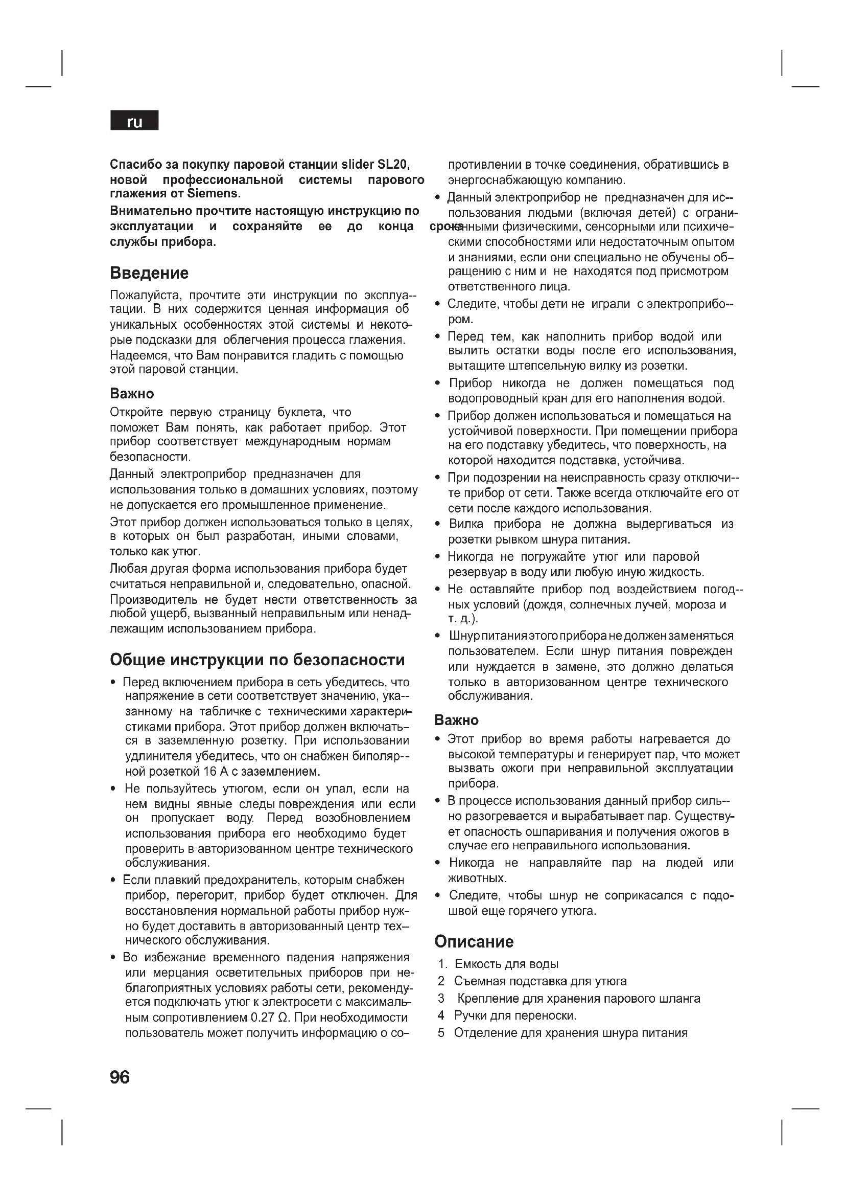 - Этот прибор во время работы нагревается до высокой температуры и генерирует пар, что может вызвать ожоги при неправильной эксплуатации