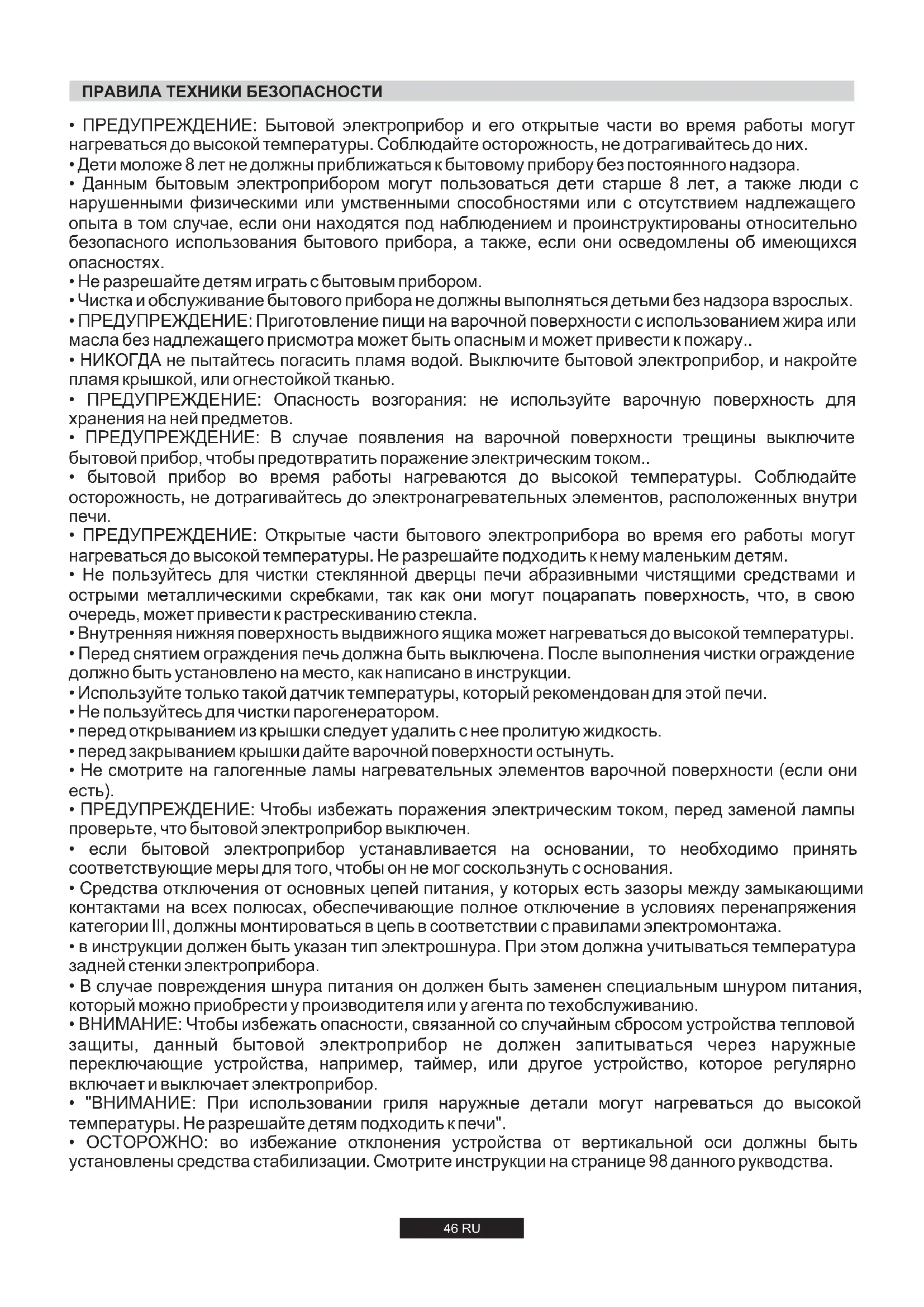 - "ВНИМАНИЕ: При использовании гриля наружные детали могут нагреваться до высокой температуры. Не разрешайте детям подходить к печи".