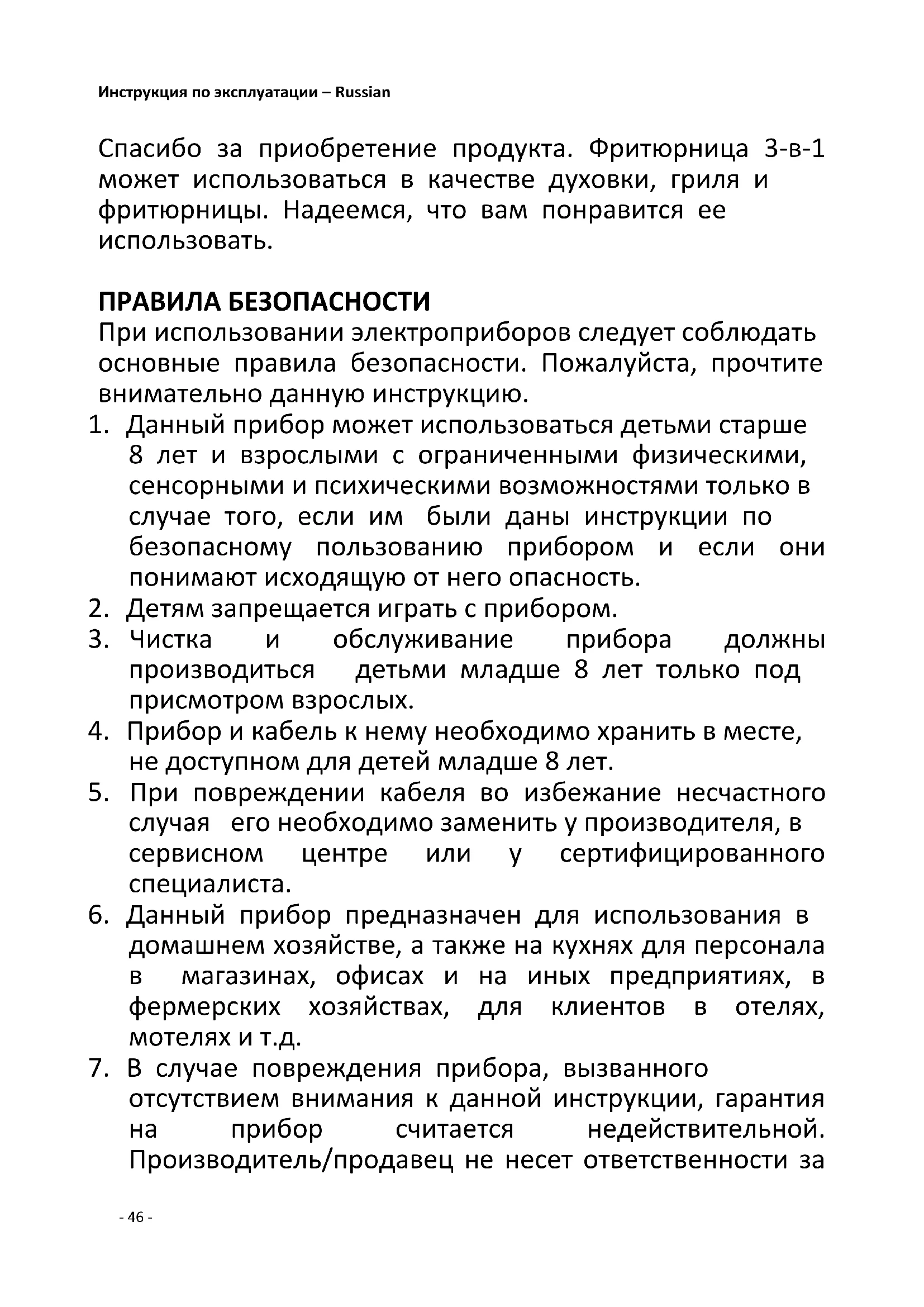 6. Данный прибор предназначен для использования в