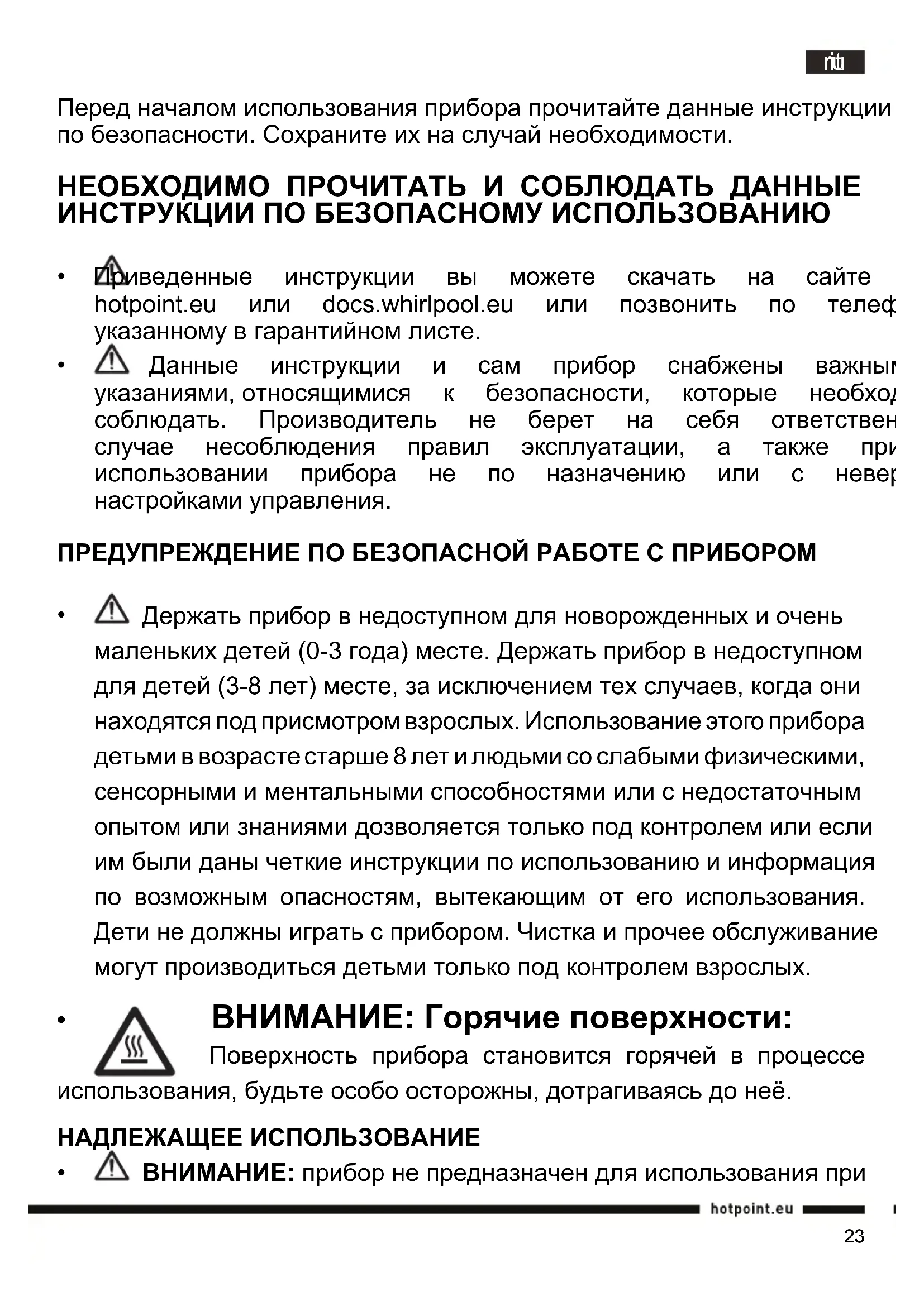 - Приведенные инструкции вы можете скачать на сайте www. hotpoint.eu или docs.whirlpool.eu или позвонить по телефону, указанномувгарантийномлисте.