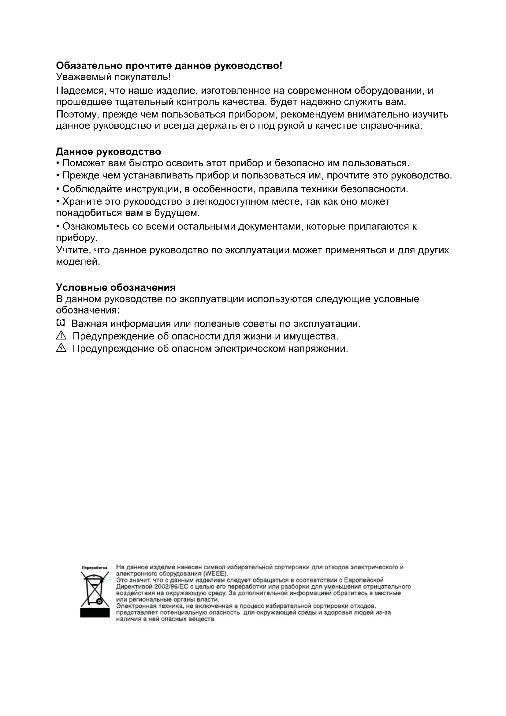 - Прежде чем устанавливать прибор и пользоваться им, прочтите это руководство.