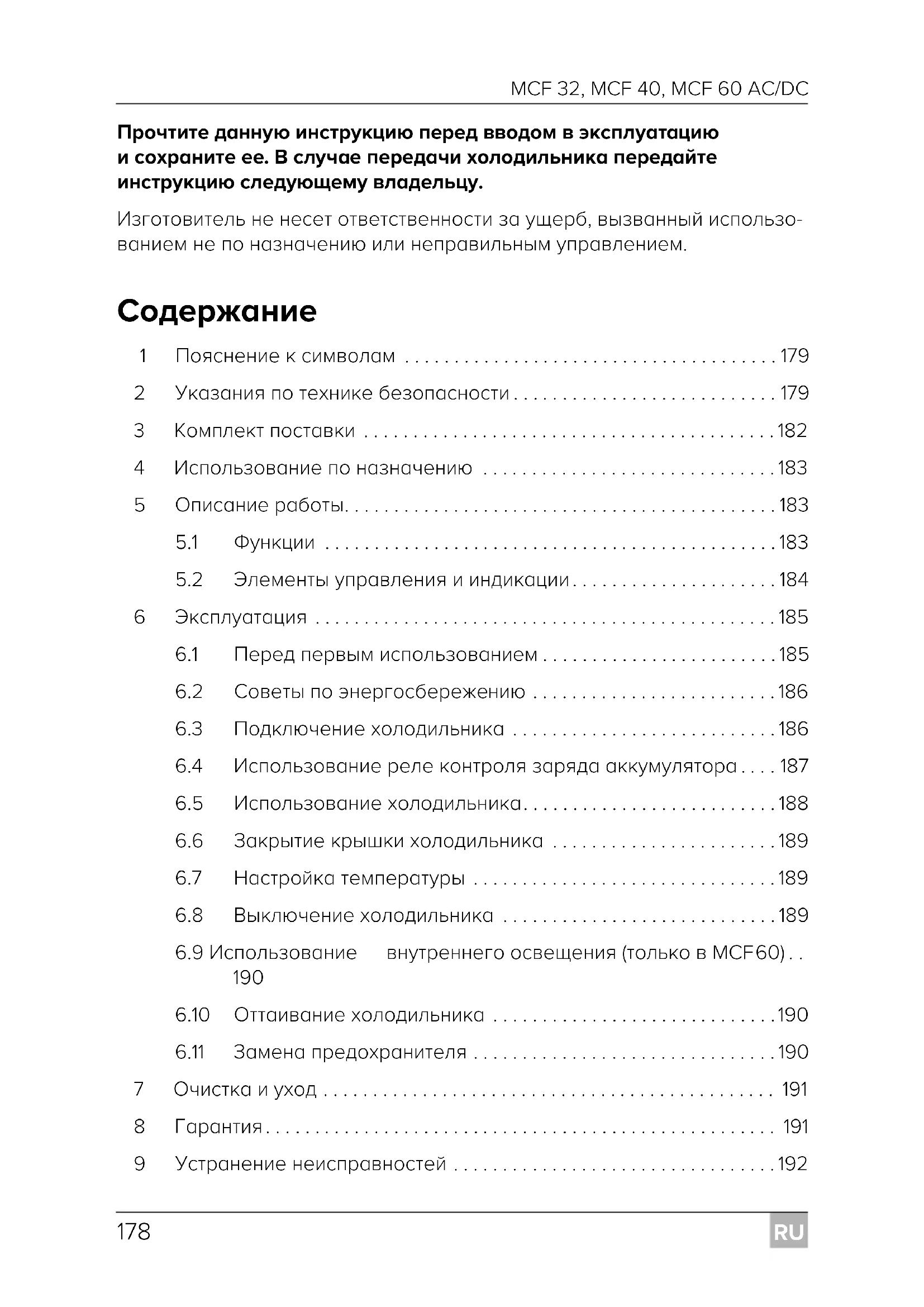 Дополнительная информация по управлению продуктом. FR34-FR40-FR60_MCF32-MCF40-MCF60_OPM_EMEA16.book Seite 179 Donnerstag, 13. Februar 2020 3:51 15RU Указания по технике безопасности MCF 32, MCF 40, MCF 60 AC/DC