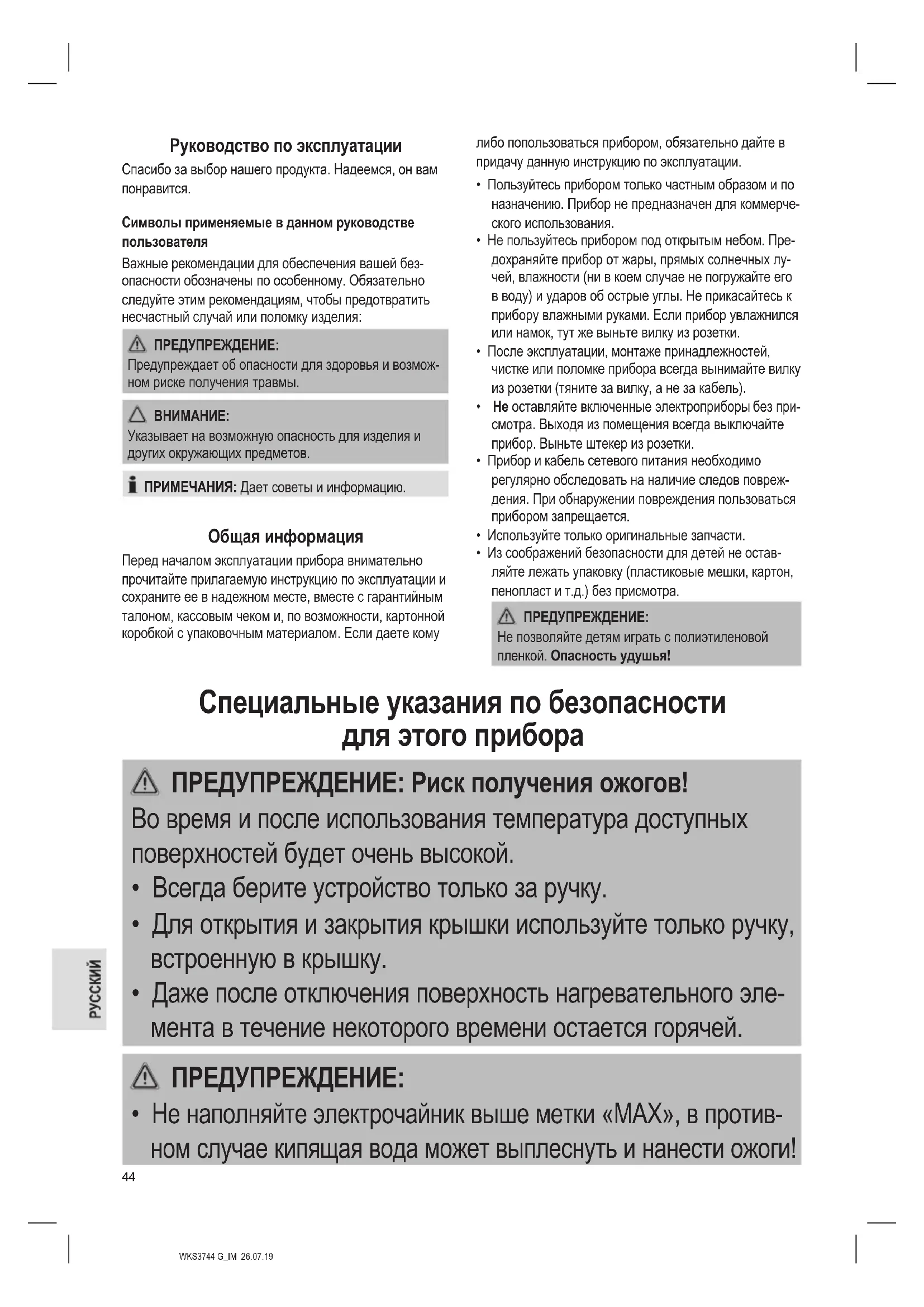 РУКОВОДСТВО ПОЛЬЗОВАТЕЛЯ WKS 3744 G CLATRONIC