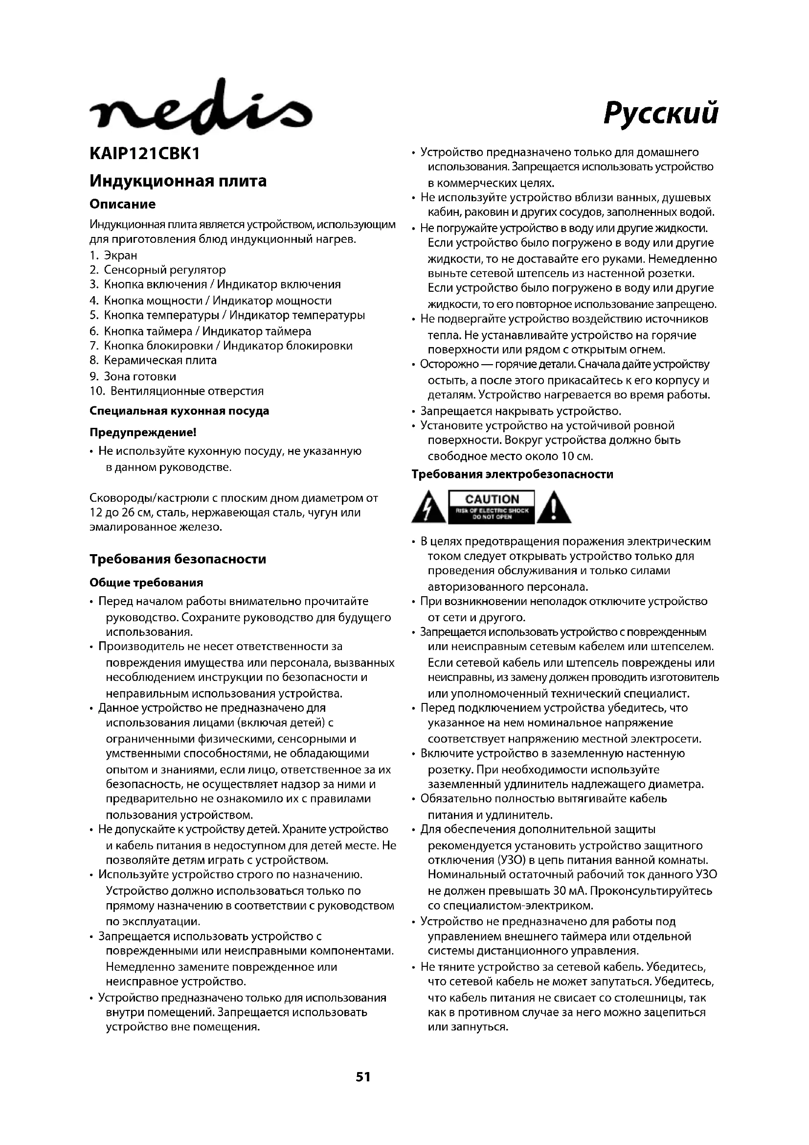 KAIP121CBK1 - плита NEDIS - Бесплатное руководство пользователя