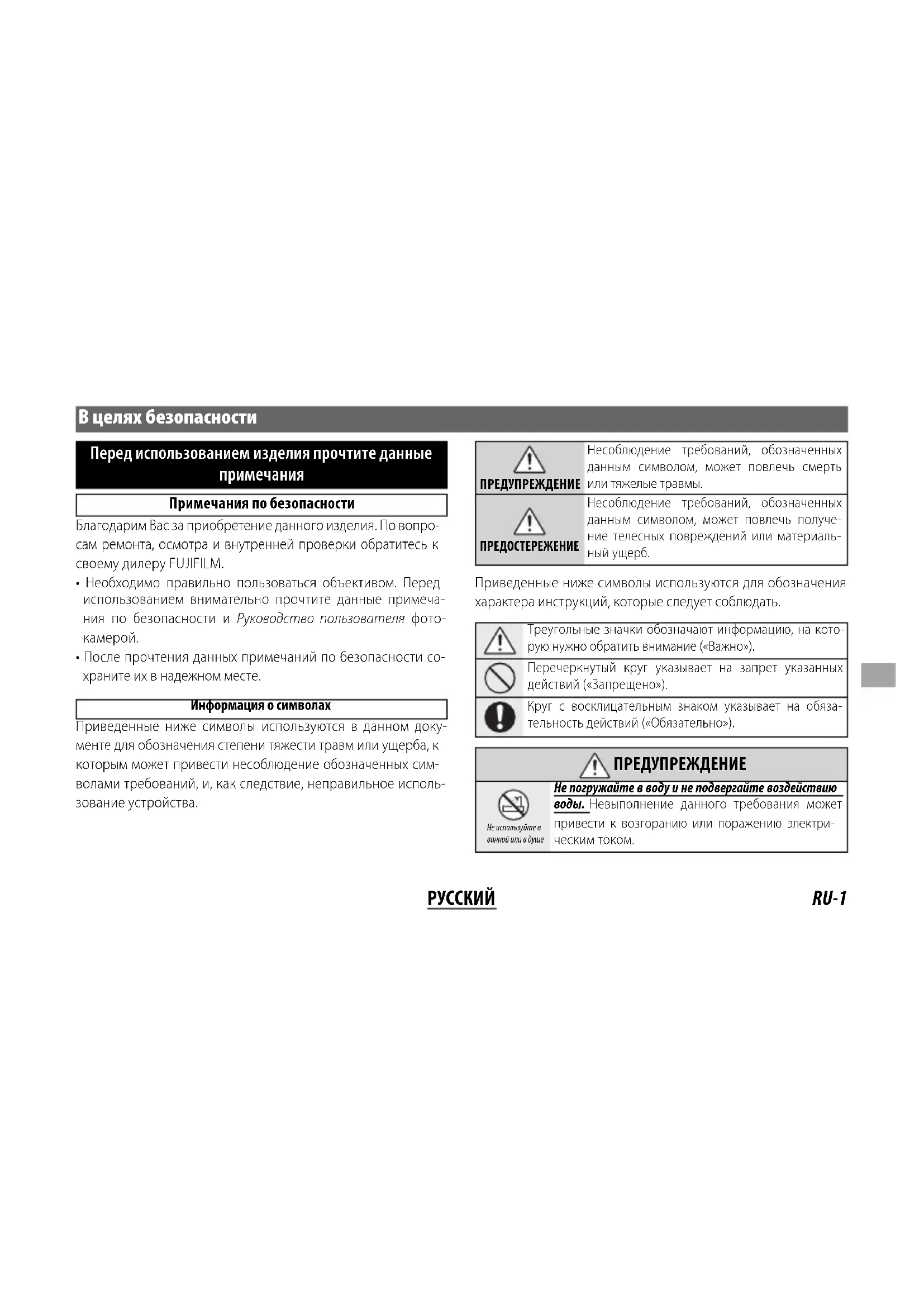 Примечания по безопасности Благодарим Вас за приобретение данного изделия. По вопро- сам ремонта, осмотра и внутренней проверки обратитесь к своему дилеру FUJIFILM.
