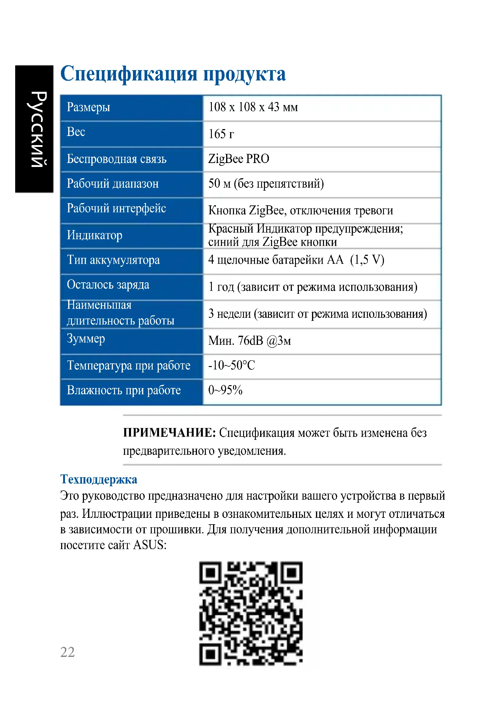 Мин. 76dB @3м Температура при работе -10~50°C Влажность при работе 0~95% ПРИМЕЧАНИЕ: Спецификация может быть изменена без предварительного уведомления. Техподдержка Это руководство предназначено для настройки вашего устройства в первый раз. Иллюстрации приведены в ознакомительных целях и могут отличаться в зависимости от прошивки. Для получения дополнительной информации посетите сайт ASUS: