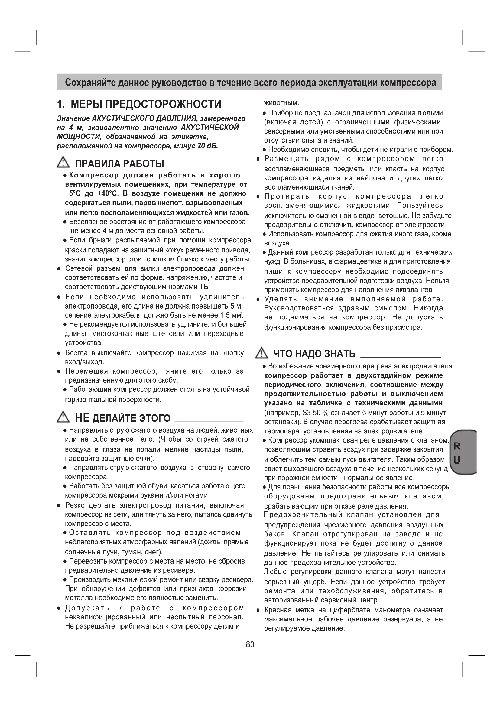 Сохраняйте данное руководство в течение всего периода эксплуатации компрессора