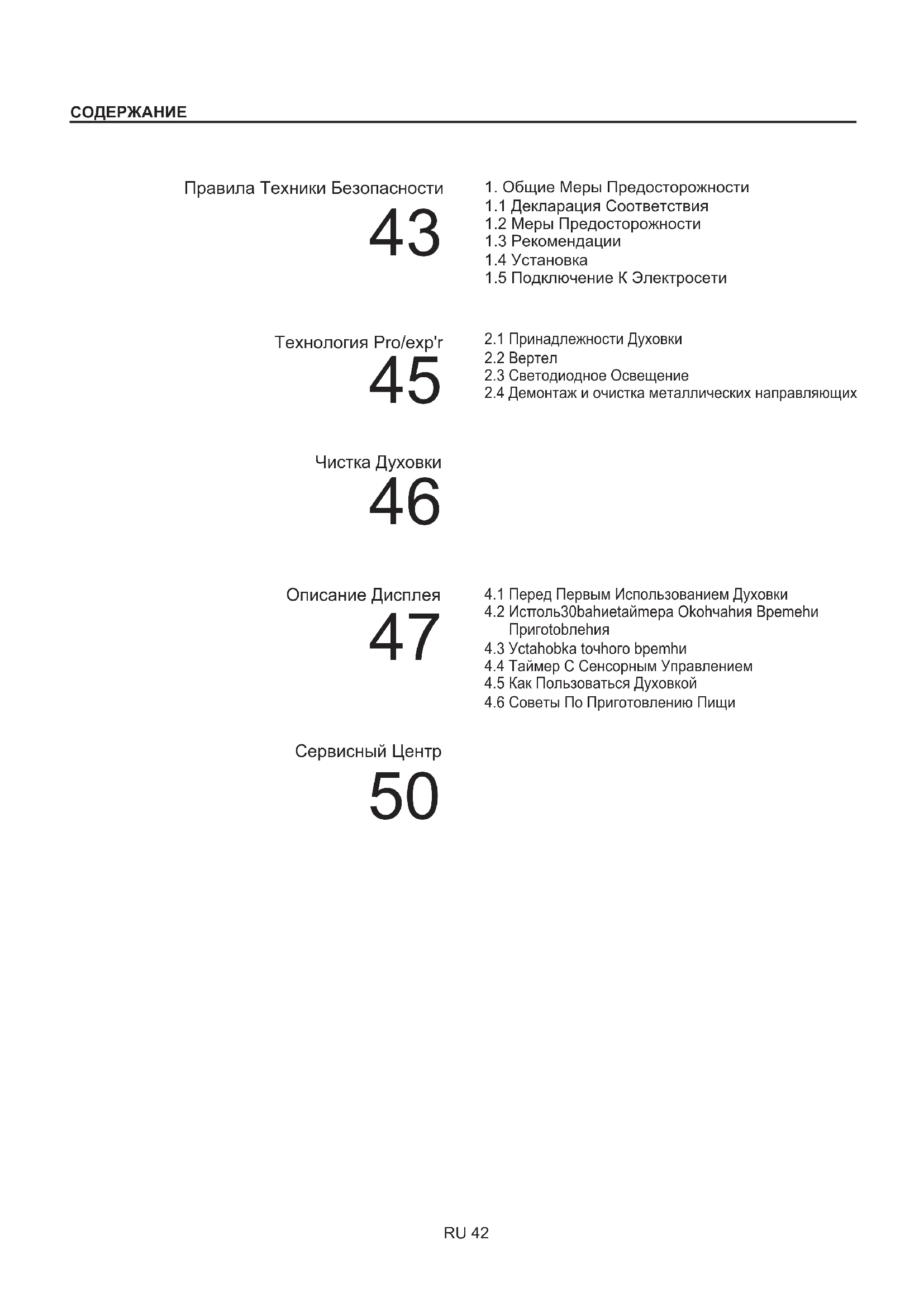 Чтобы добиться наилучших результатов при эксплуатации духовки, внимательно прочтите это руководство. Рекомендуется сохранить данное руководство по установке и эксплуатации и обращаться к нему по мере необходимости. В случае обращения за помощью в сервисный центр сообщите серийной номер духовки, указанный в ее паспортной табличке. После того как вы распакуете духовку, проверьте, что на ней нет никаких повреждений. В случае каких-либо сомнений не пользуйтесь духовкой, а свяжитесь с квалифицированным специалистом по обслуживанию. Храните упаковочные материалы (пластиковые мешки, прокладки из полистирола, гвозди) в недоступном для детей месте, так как эти материалы являются опасными для детей. В случае несоблюдения инструкций, представленных в данном руководстве, производитель не несет никакой ответственности за возможные повреждения и убытки. ПРИМЕЧАНИЕ: Функции, характеристики и принадлежности духовки, о которых упоминается в данном руководстве, могут изменяться в зависимости от модели духовки. RU 43