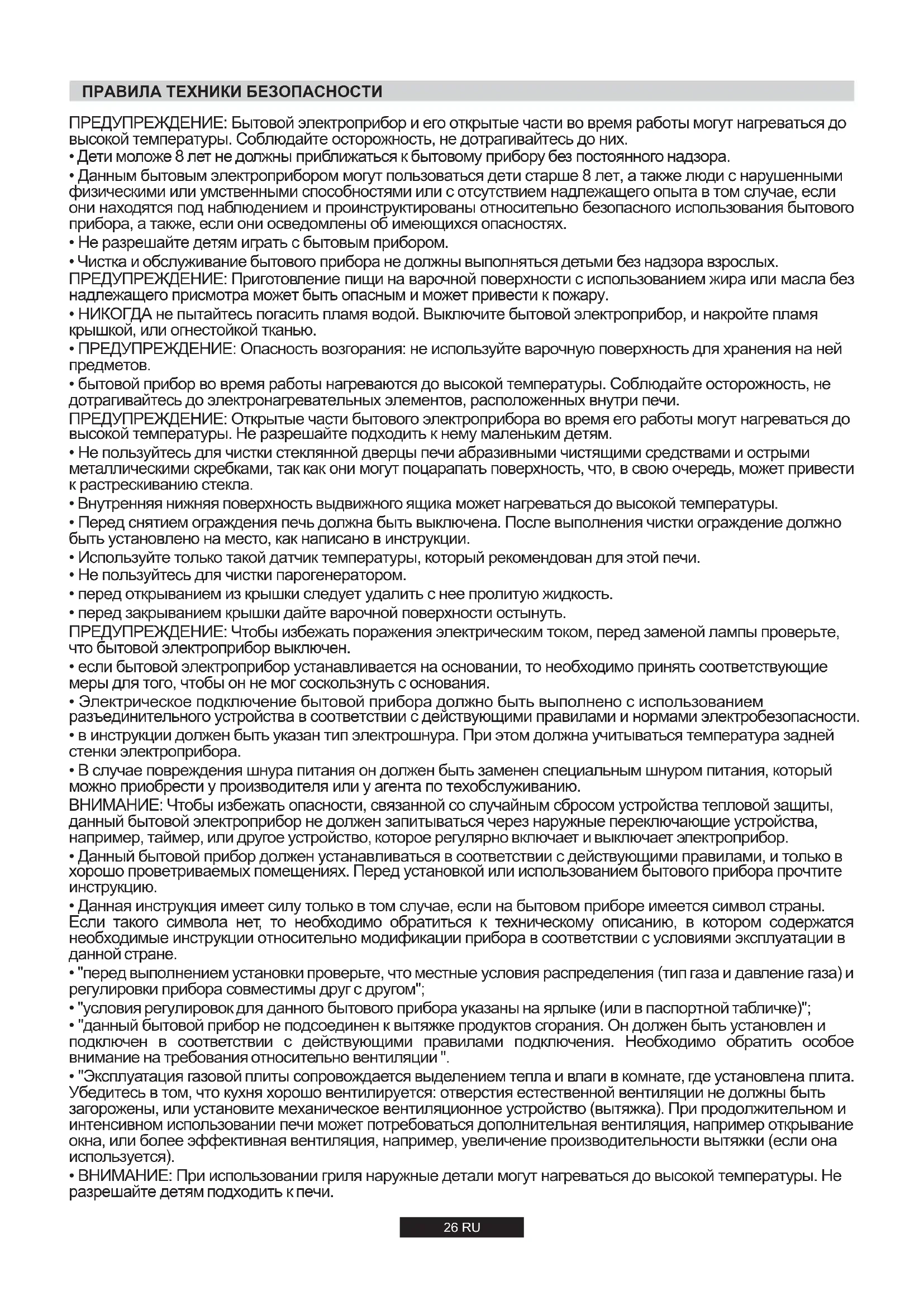 - ВНИМАНИЕ: При использовании гриля наружные детали могут нагреваться до высокой температуры. Не разрешайте детям подходить к печи. ПРАВИЛА ТЕХНИКИ БЕЗОПАСНОСТИ27 RU