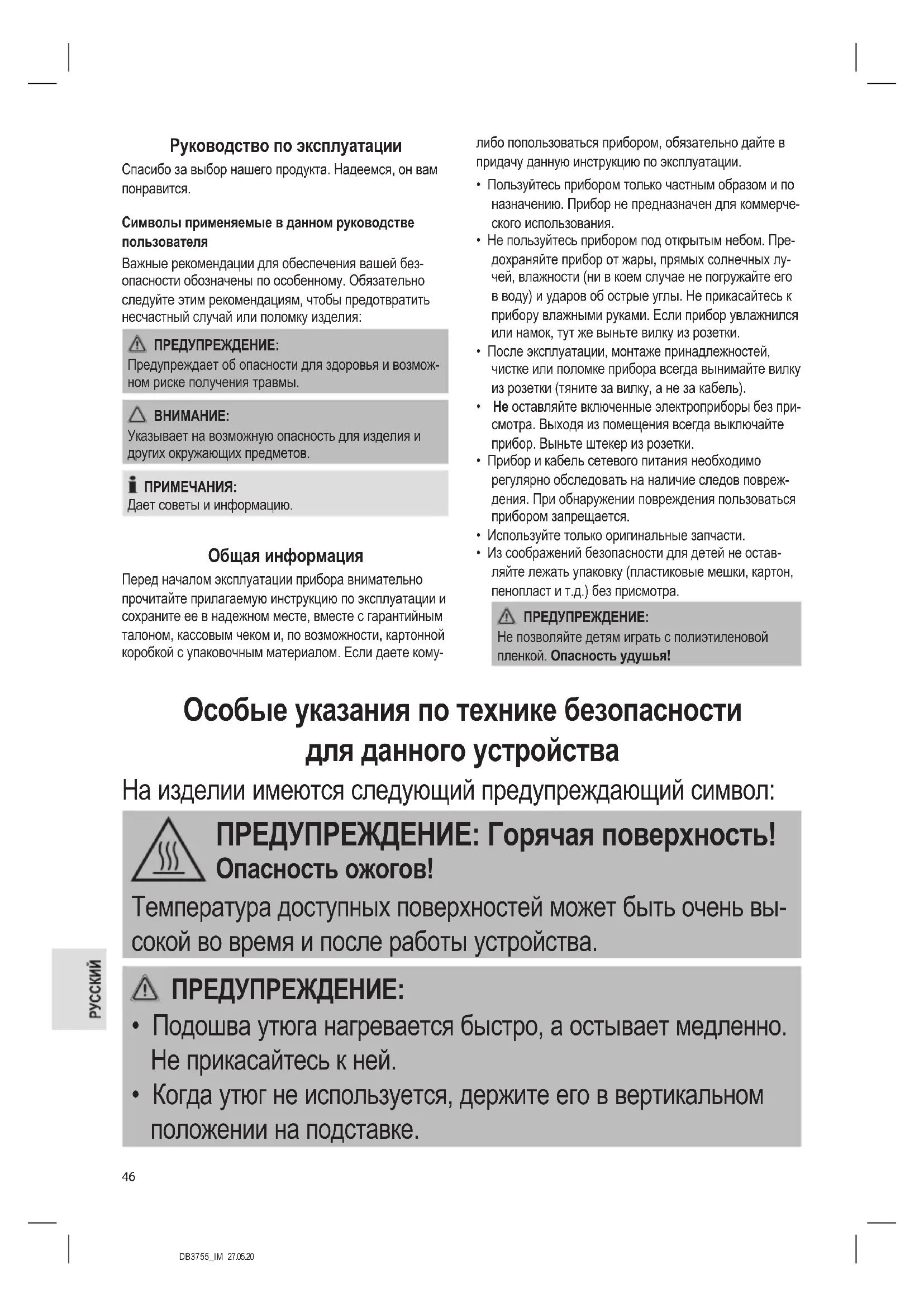- Чистка и технический обслуживание прибора детьми не допускается.DB3755_IM 27.05.20