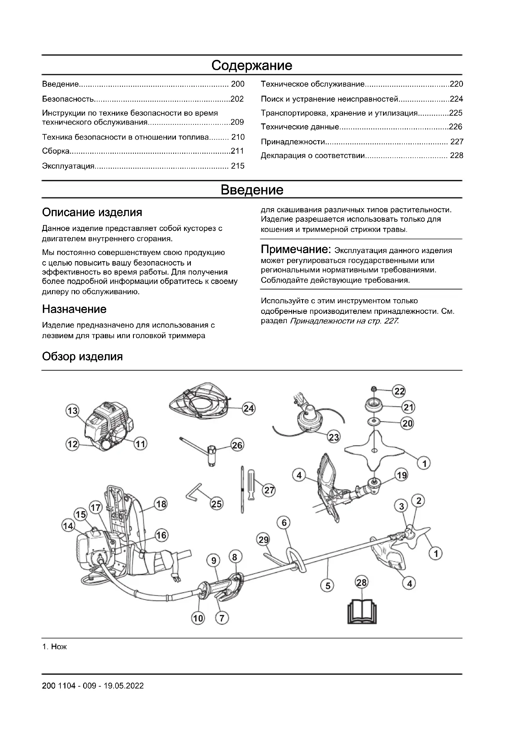 Описание изделия Данное изделие представляет собой кусторез с двигателем внутреннего сгорания. Мы постоянно совершенствуем свою продукцию с целью повысить вашу безопасность и эффективность во время работы. Для получения более подробной информации обратитесь к своему дилеру по обслуживанию.