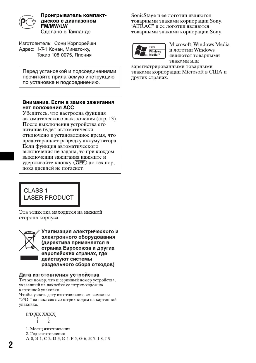 SonicStage и ее логотип являются товарными знаками корпорации Sony. “ATRAC” и ее логотип являются товарными знаками корпорации Sony.