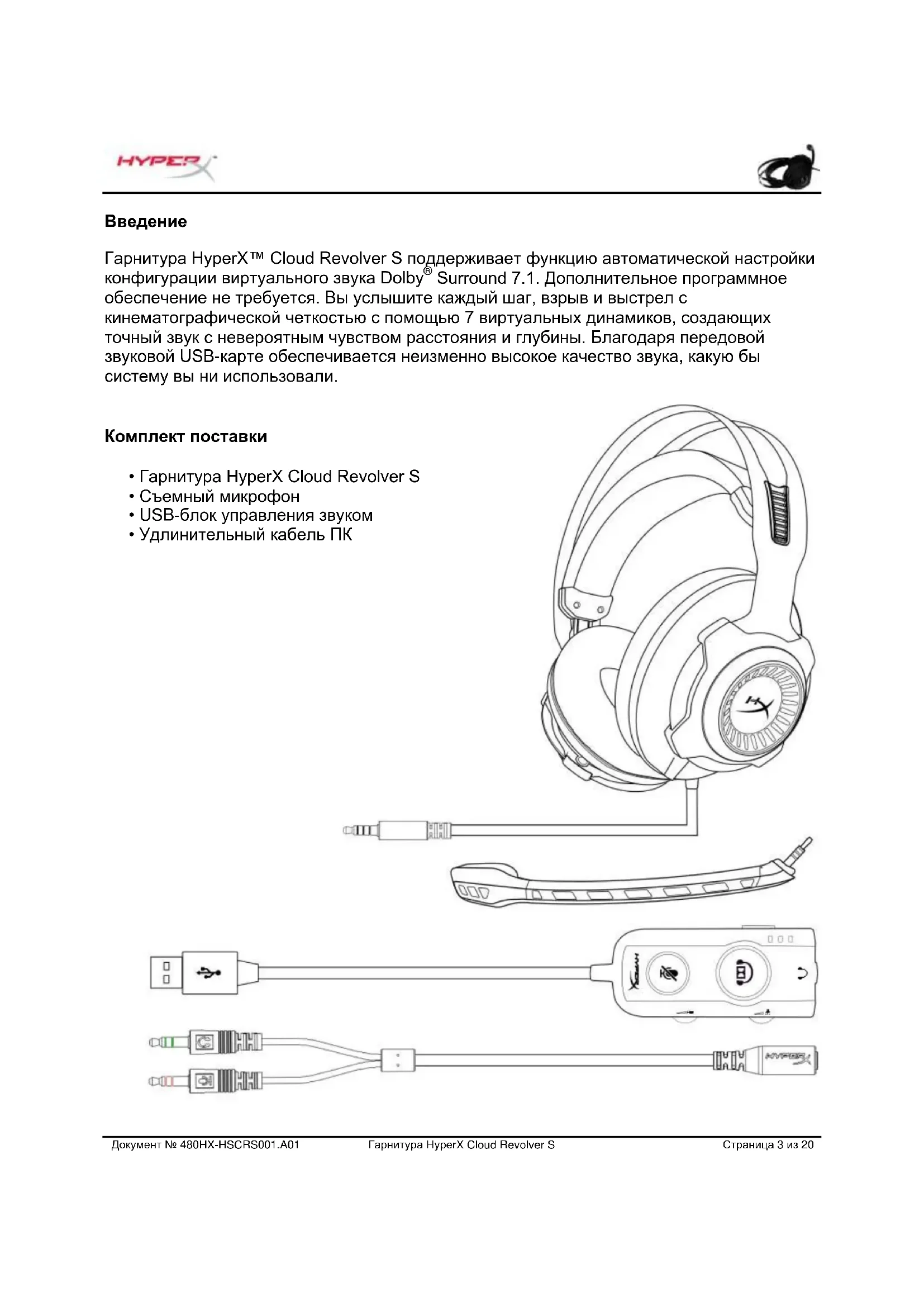 - Удлинительный кабель ПКДокумент № 480HX-HSCRS001.A01 Гарнитура HyperX Cloud Revolver S Страница 4 из 20 Характеристики