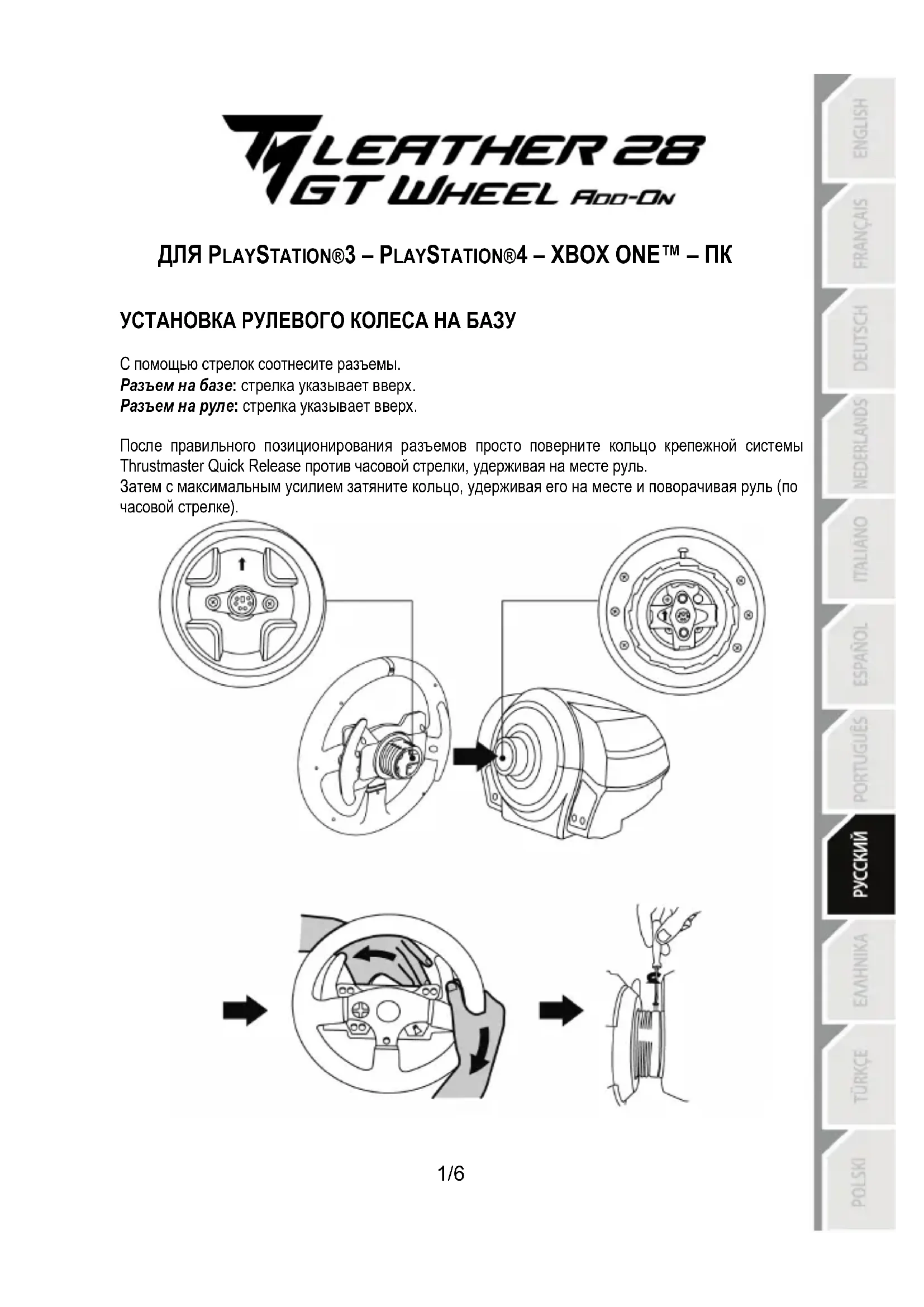 РУКОВОДСТВО ПОЛЬЗОВАТЕЛЯ TM Leather 28 GT Wheel AddOn THRUSTMASTER