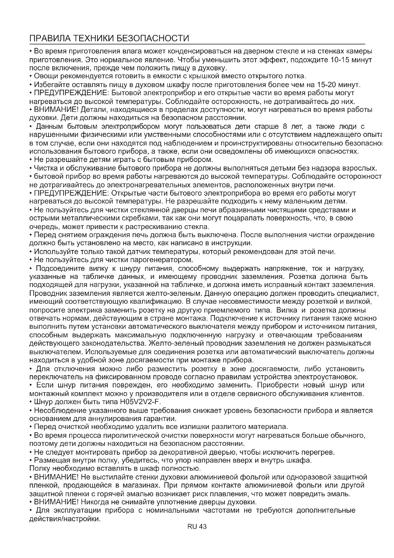 - ВНИМАНИЕ! Детали, находящиеся в пределах доступности, могут нагреваться во время работы духовки. Дети должны находиться на безопасном расстоянии.