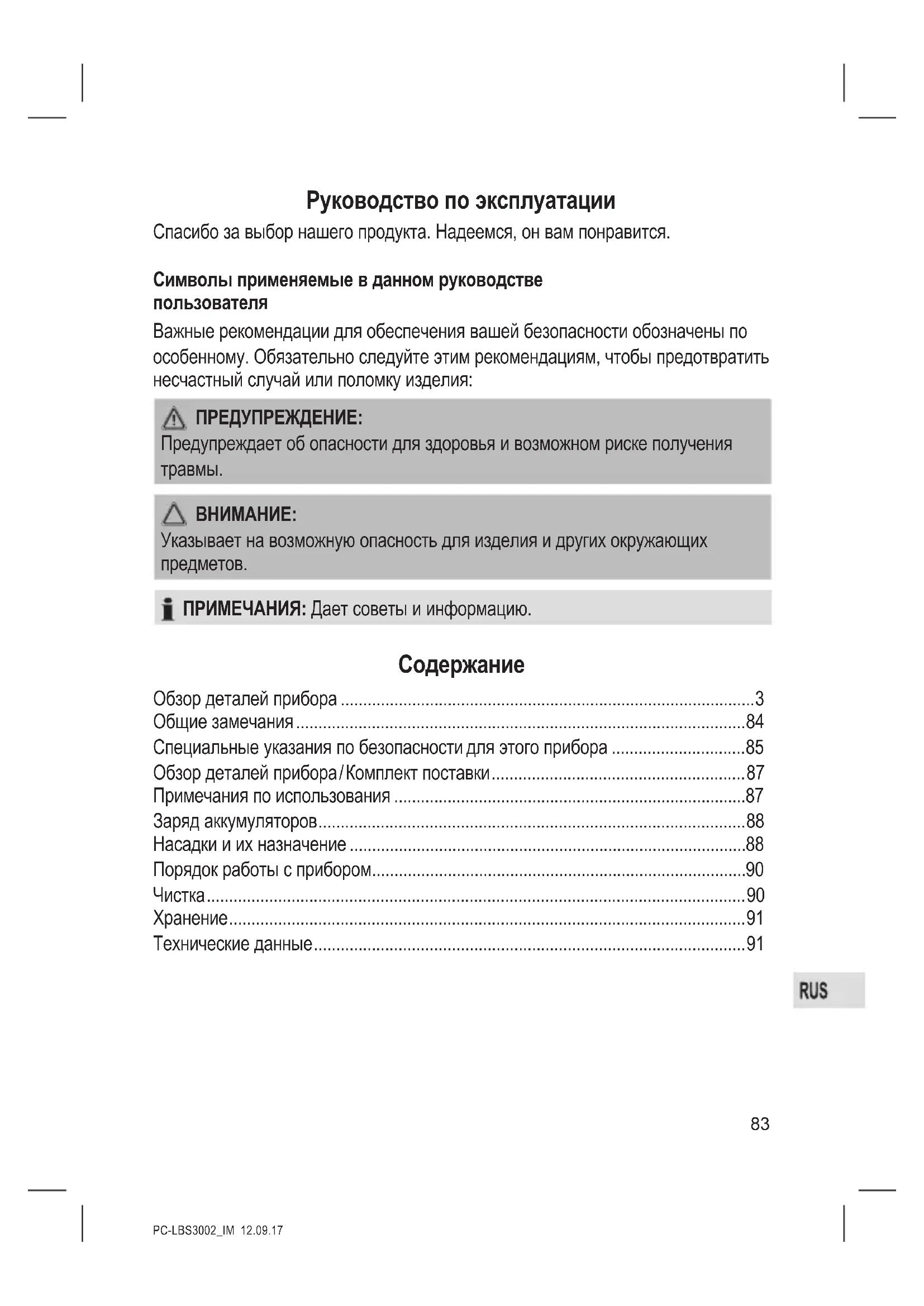 - Данное изделие может использоваться детьми не младше 8 лет и лицами с ограниченными физическими, сенсор- ными и умственными способностями, а также лицами без соответствующего опыта и знаний, если за ними ведется контроль или был проведен их инструк- таж относительно безопасного использо-PC-LBS3002_IM 12.09.17