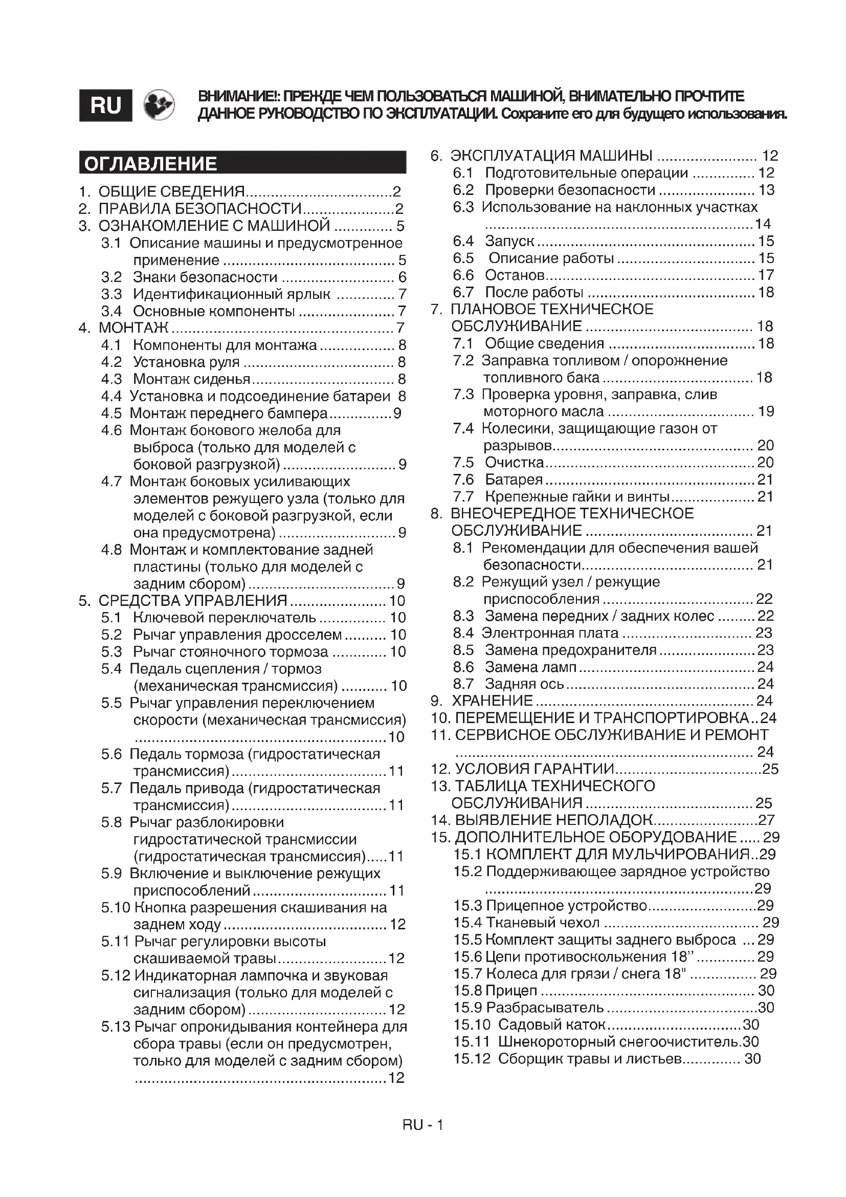 15.12 Сборщик травы и листьев.............. 30RU - 2