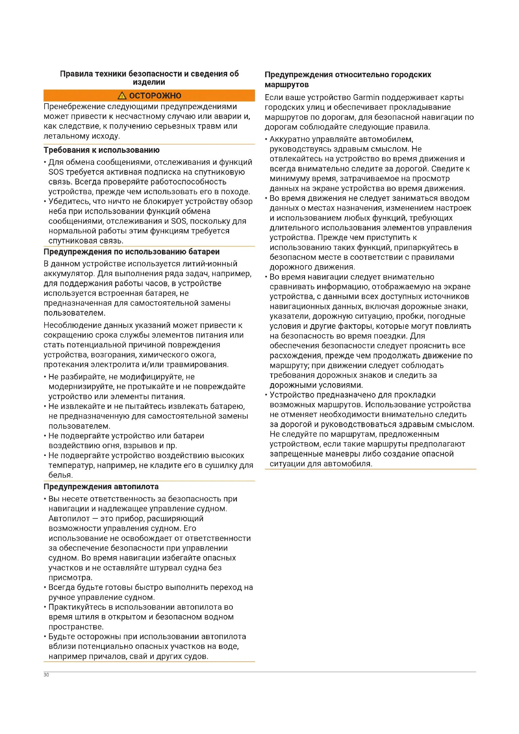 - Будьте осторожны при использовании автопилота вблизи потенциально опасных участков на воде, например причалов, свай и других судов. Предупреждения относительно городских
