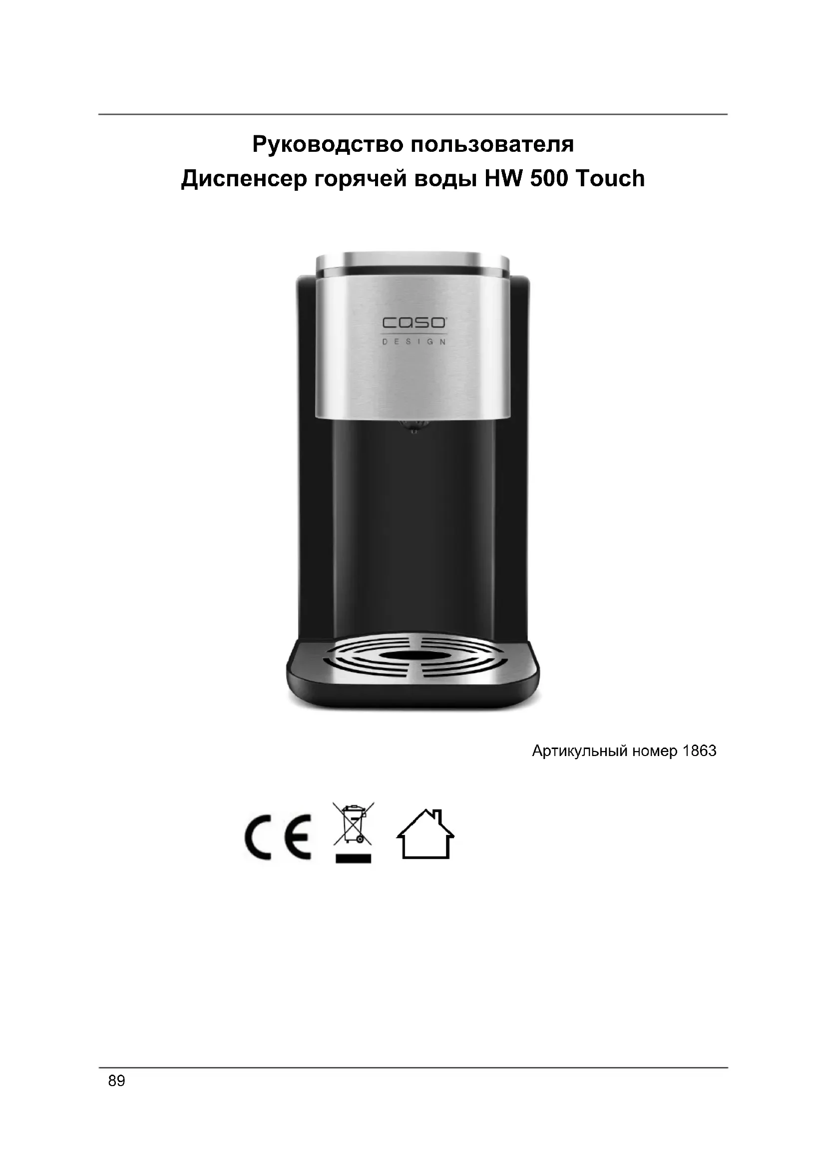 HW 500 Touch - Диспенсер для воды CASO - Бесплатное руководство пользователя