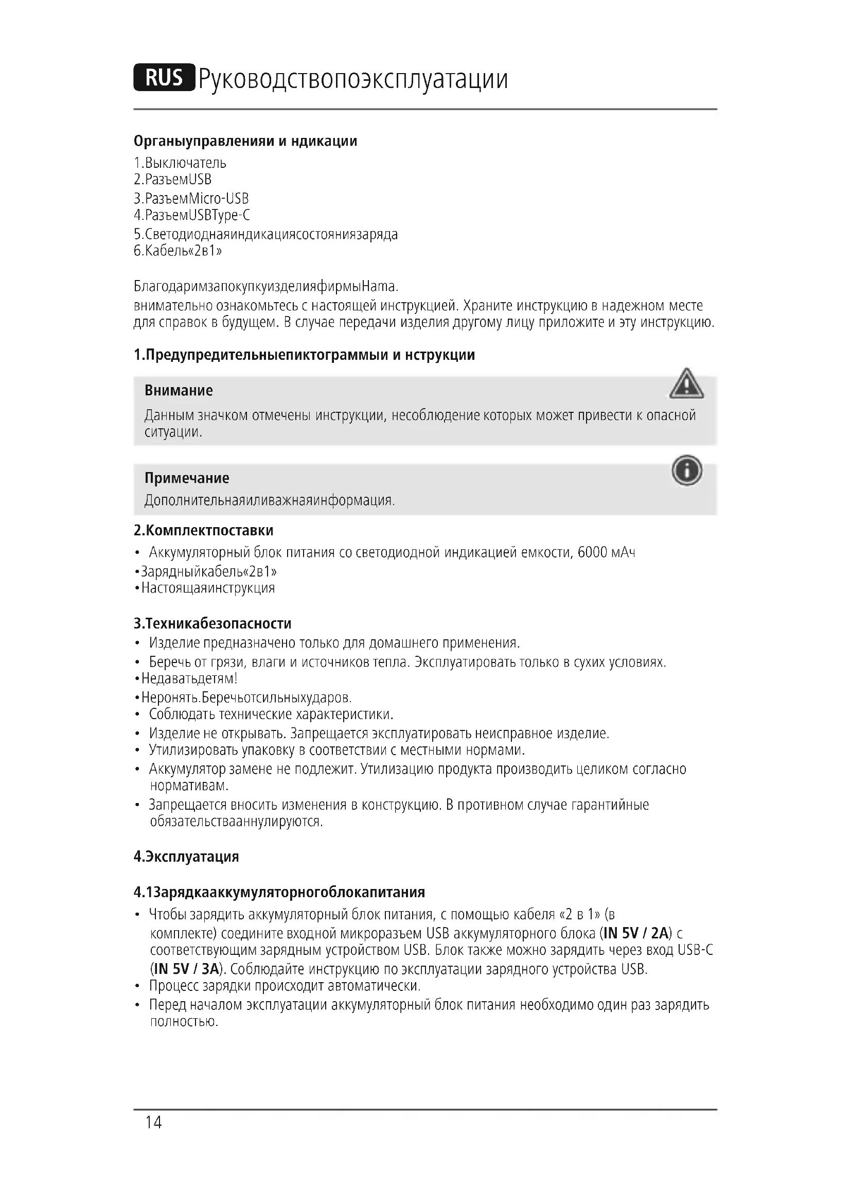- Чтобы зарядить аккумуляторный блок питания, спомощью кабеля «2 в 1» (в комплекте) соедините входной микроразъем USB аккумуляторногоблока (IN 5V /2A)с соответствующим зарядным устройством USB. Блок такжеможно зарядить через вход USB-C (IN 5V /3A). Соблюдайте инструкцию по эксплуатации зарядногоустройства USB.