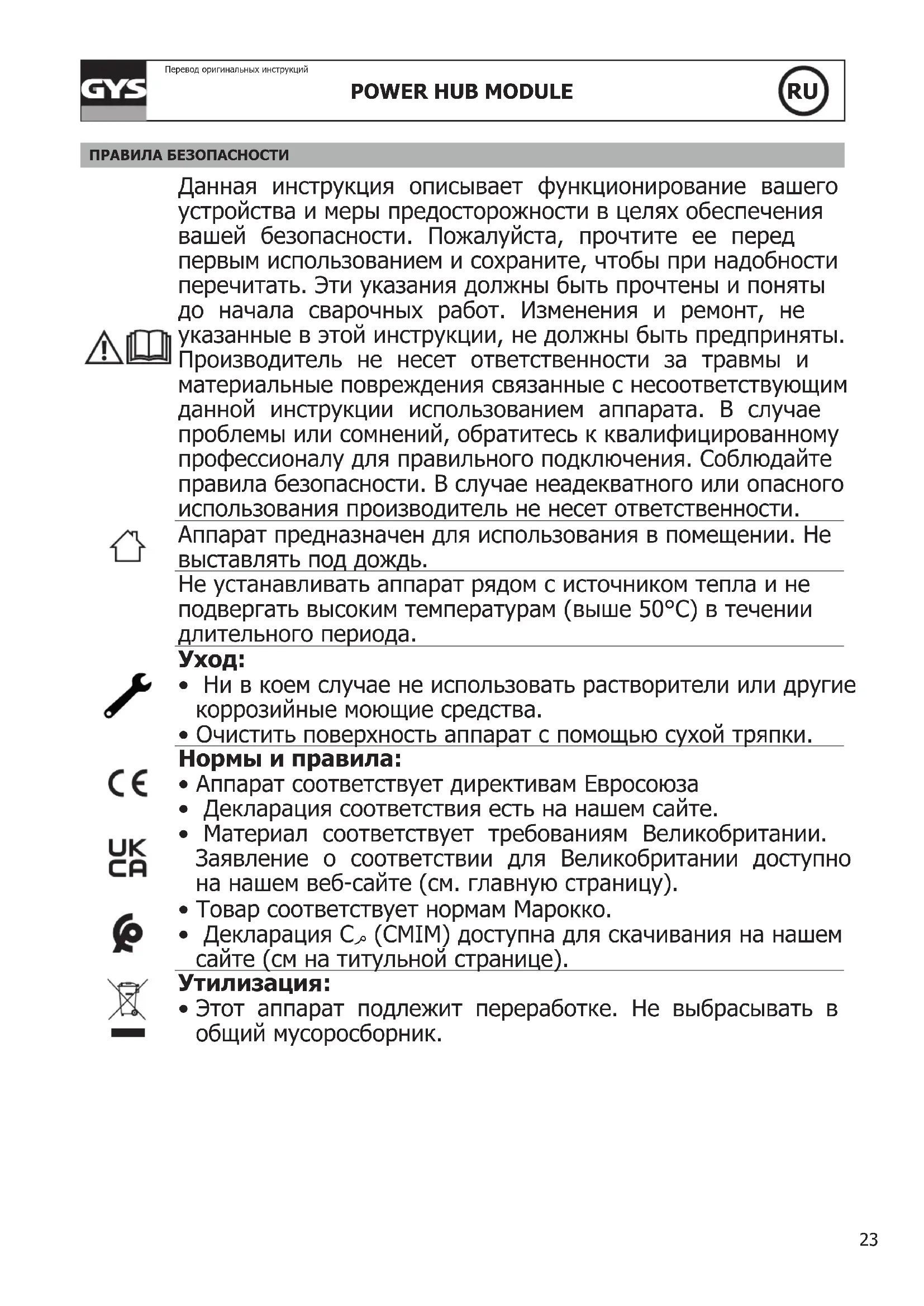 РУКОВОДСТВО ПОЛЬЗОВАТЕЛЯ Power HUB Module GYS