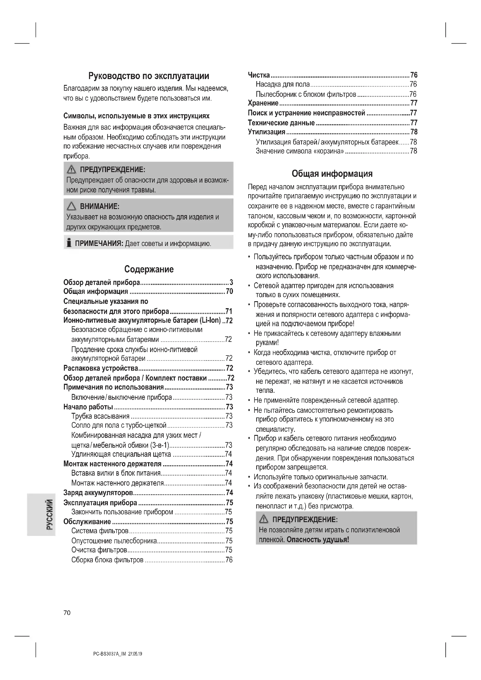 - Нагрев устройства при зарядке является нор- мальным.PC-BS3037A_IM 27.05.19