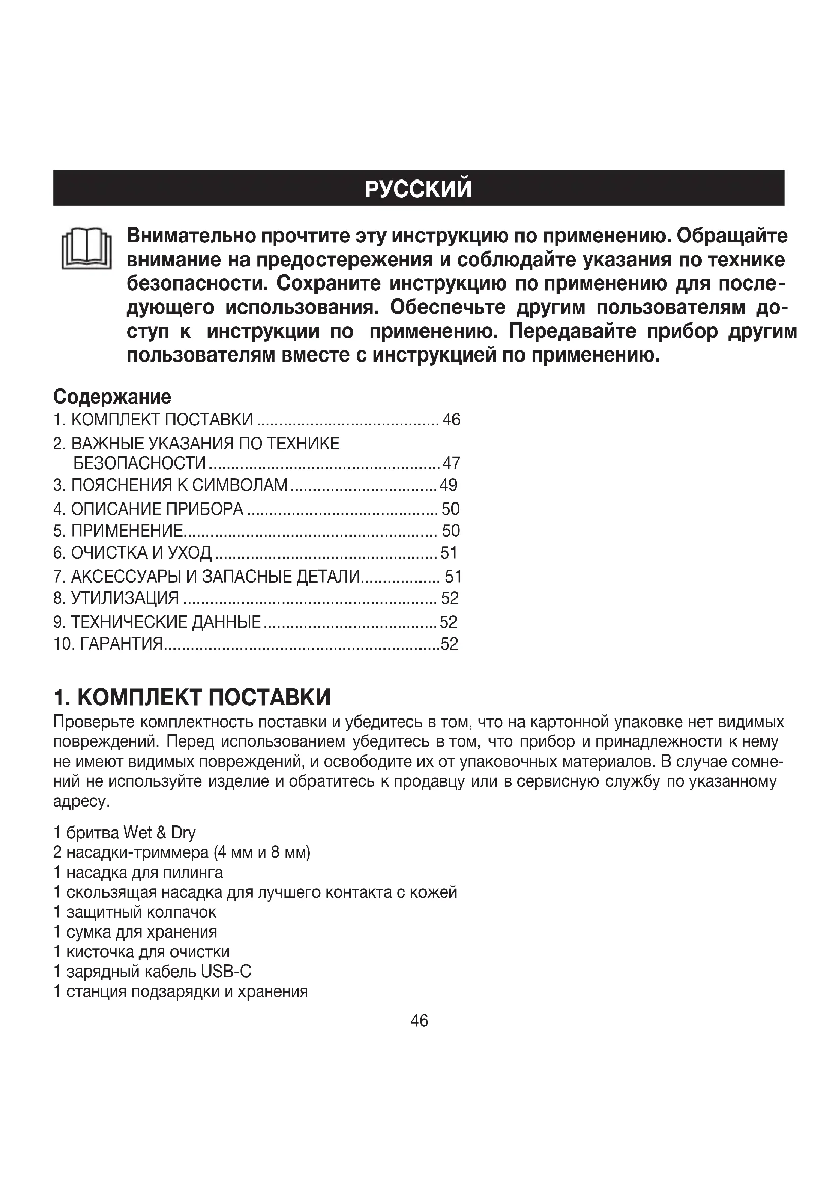 1. КОМПЛЕКТ ПОСТАВКИ ......................................... 46