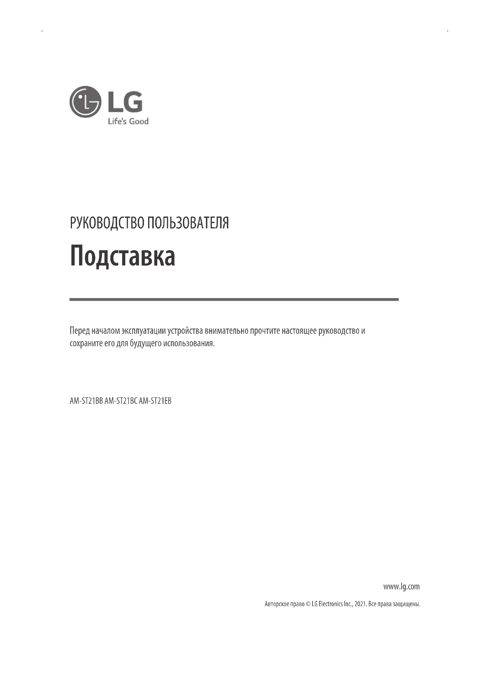 www.lg.com Авторское право © LG Electronics Inc., 2021. Все права защищены. Перед началом эксплуатации устройства внимательно прочтите настоящее руководство и сохраните его для будущего использования. AM-ST21BB AM-ST21BC AM-ST21EB2