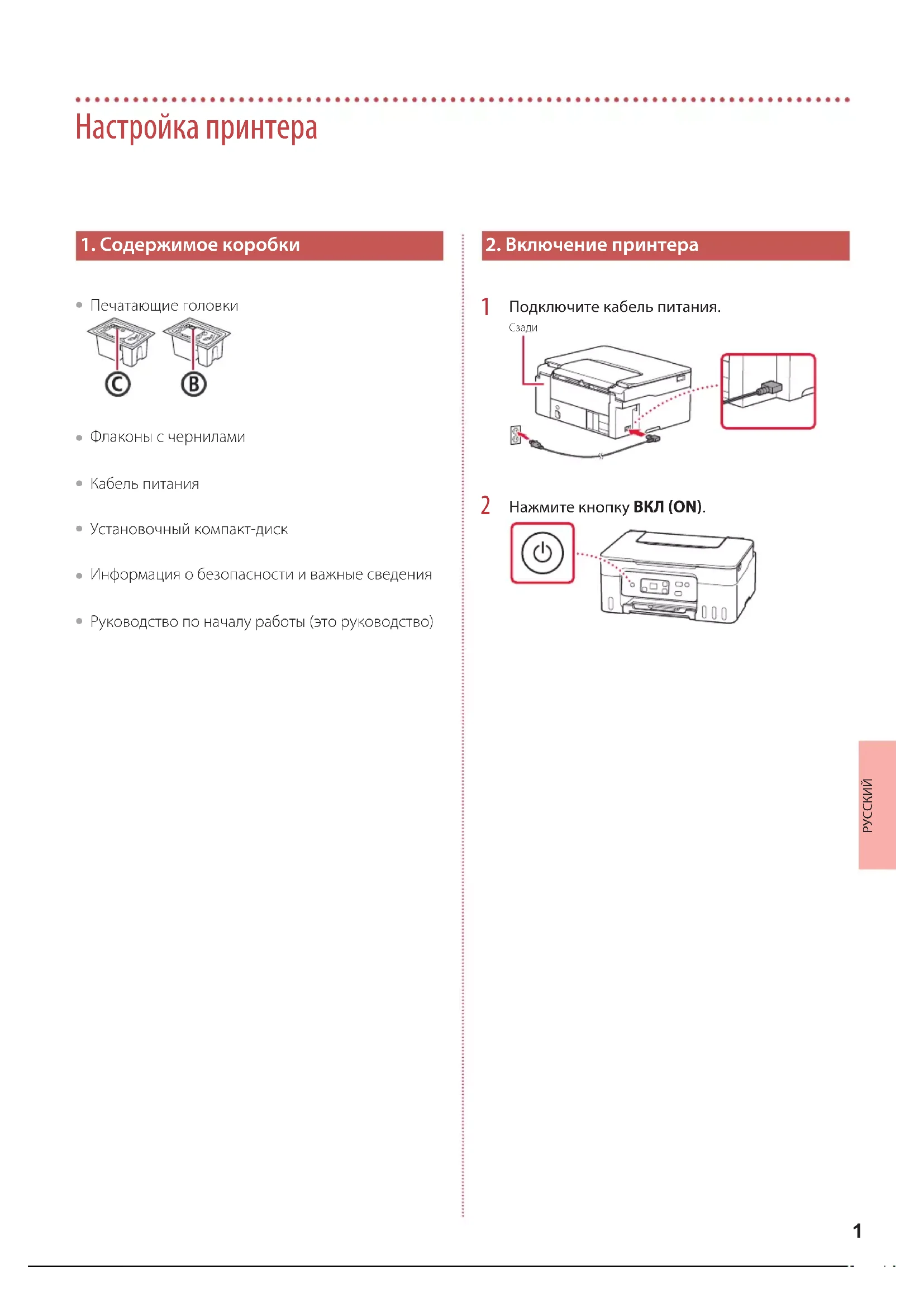 Нажмите кнопку ВКЛ (ON).2 Настройка принтера
