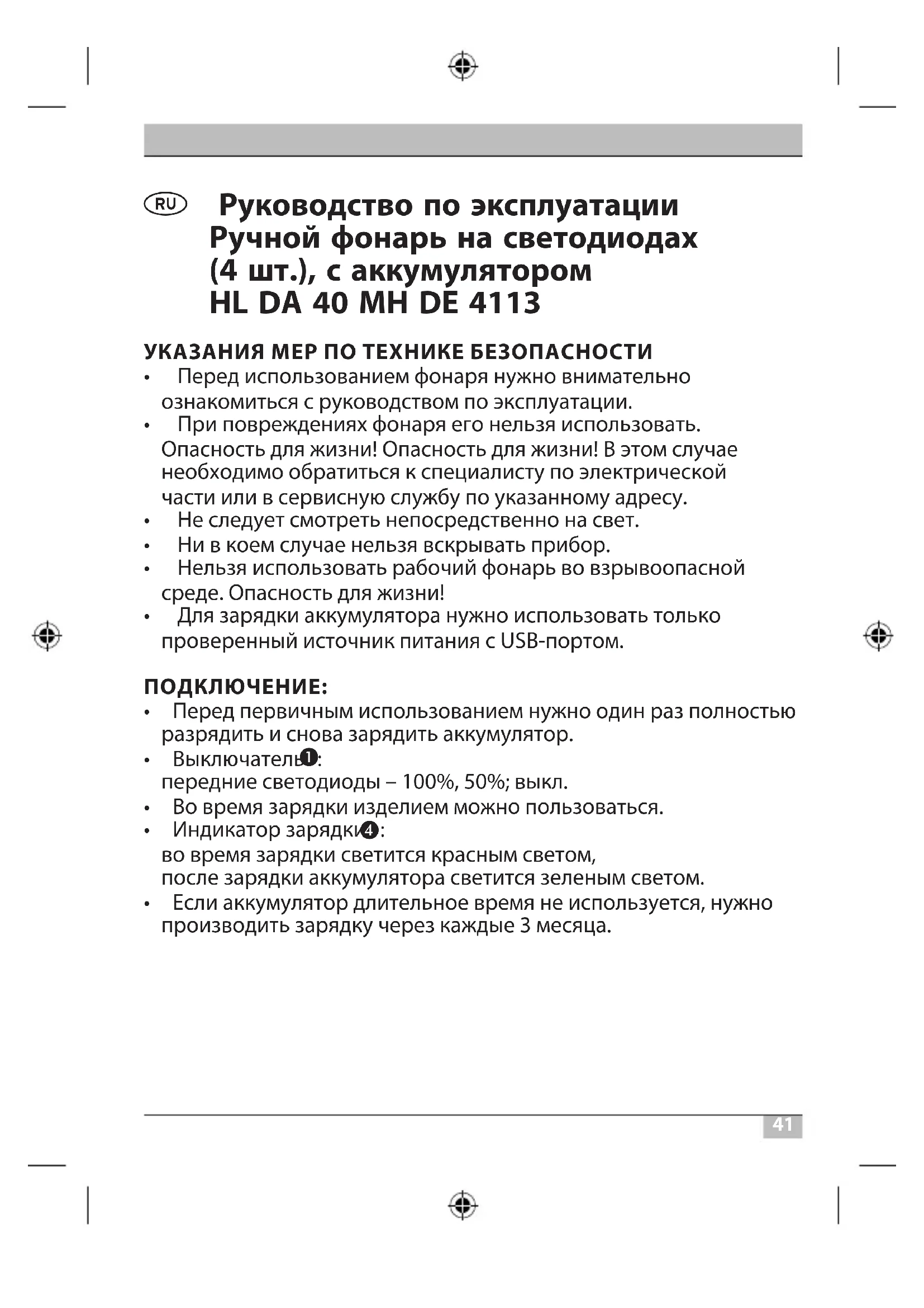 РУКОВОДСТВО ПОЛЬЗОВАТЕЛЯ HL DA 40 MH DE 4113 BRENNENSTUHL