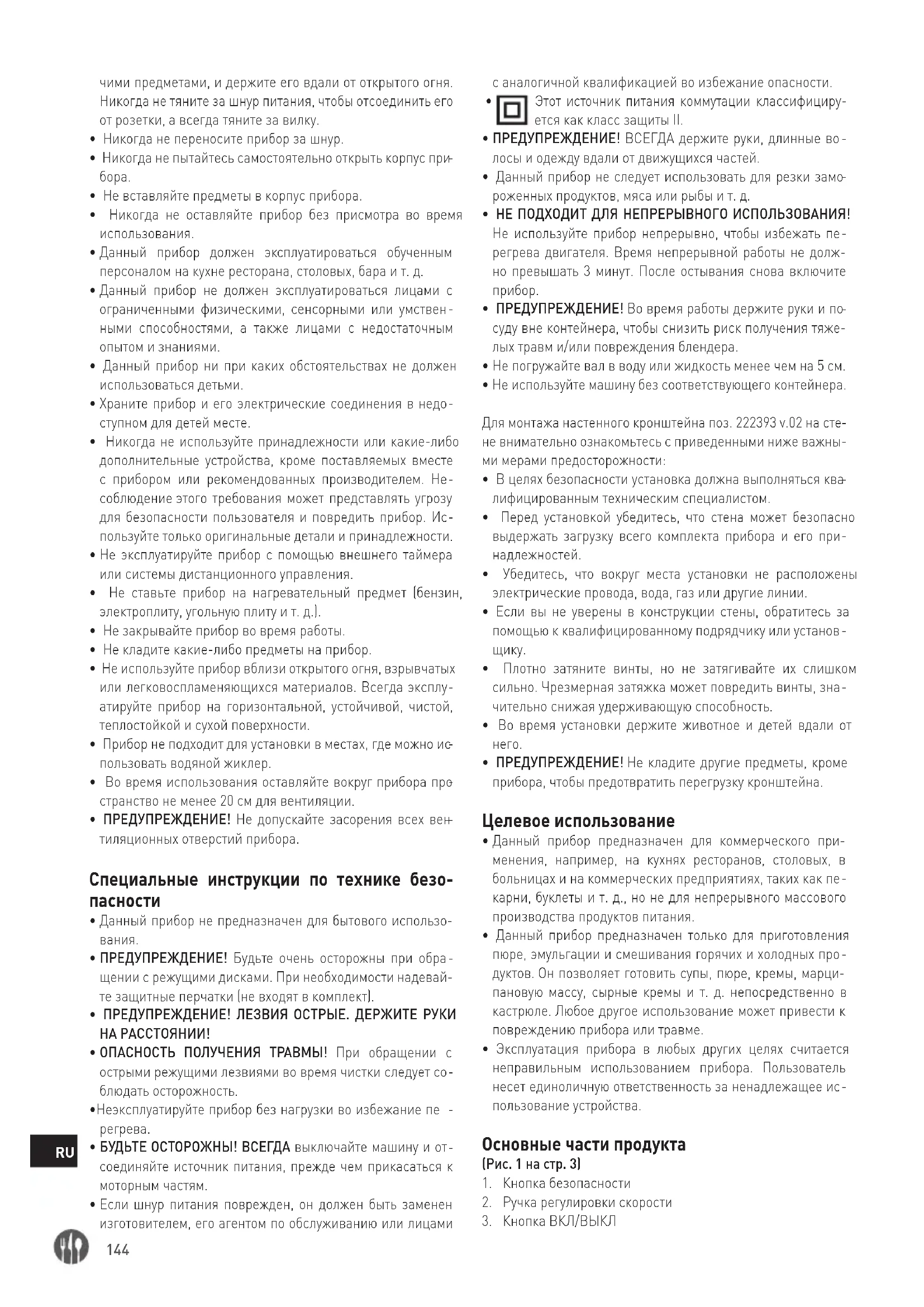 - Данный прибор должен эксплуатироваться обученным персоналом на кухне ресторана, столовых, бара и т. д.