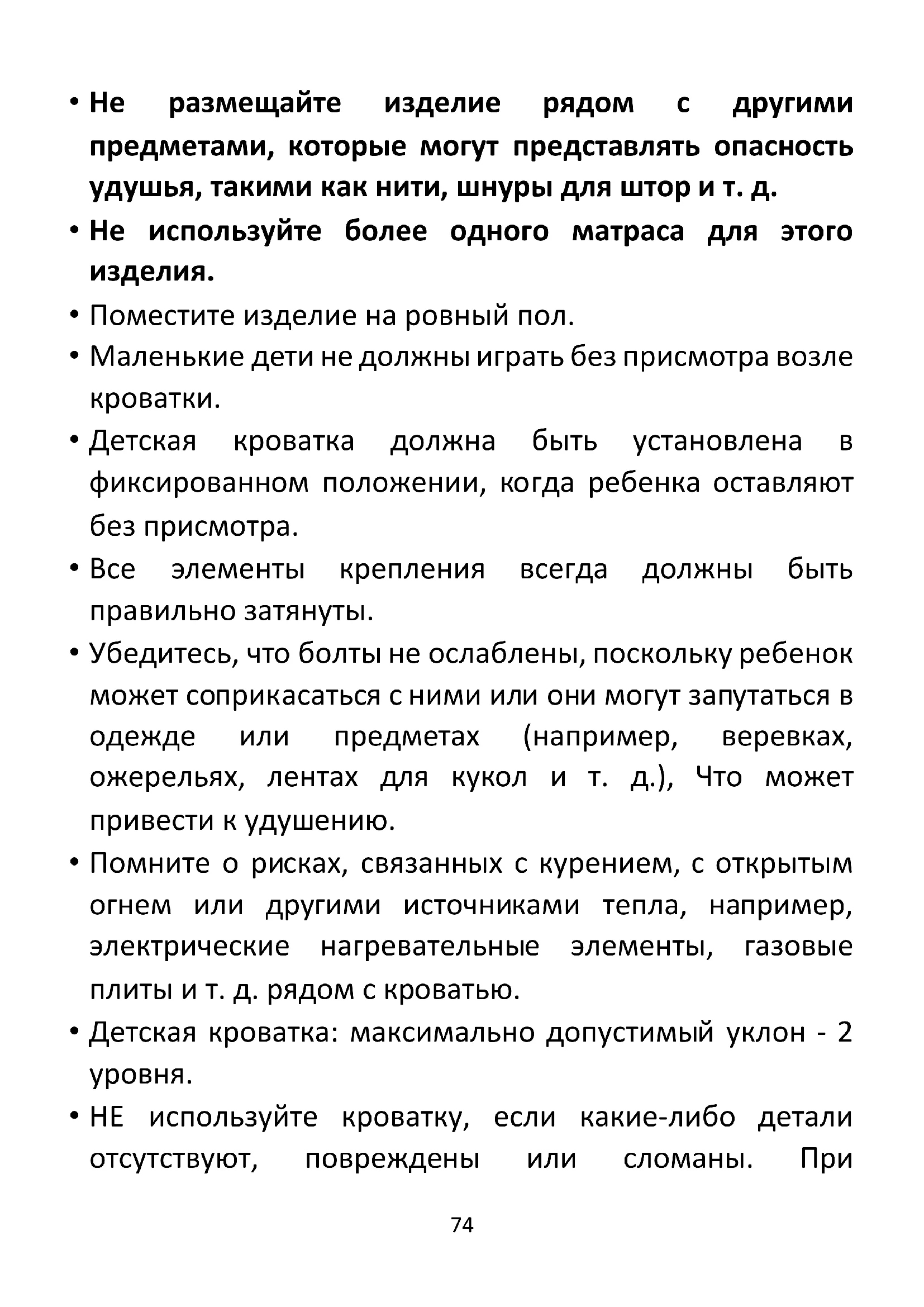- Размещение на изделии дополнительных предметов может вызвать удушье.74