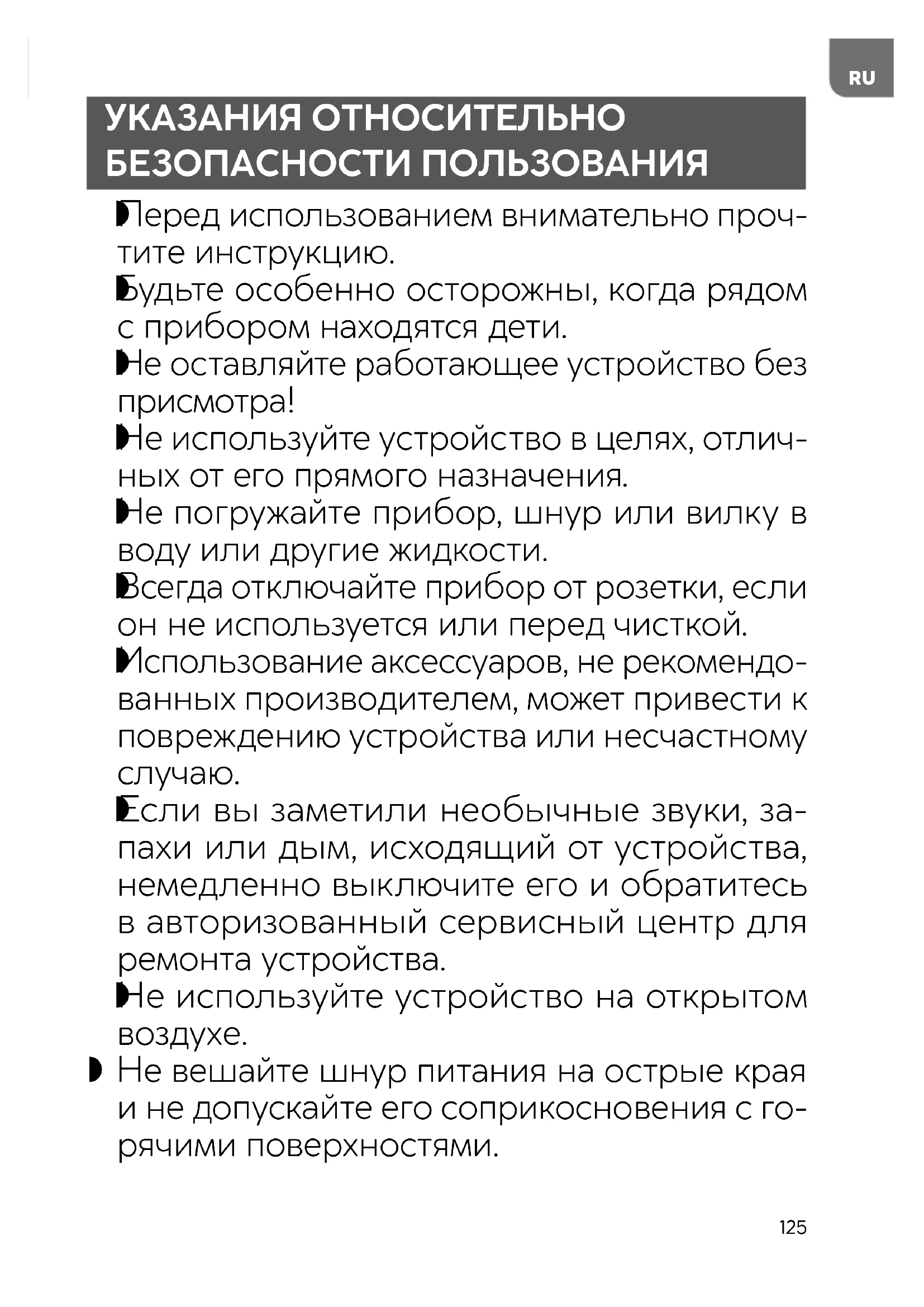 Не используйте устройство в целях, отлич- ных от его прямого назначения.