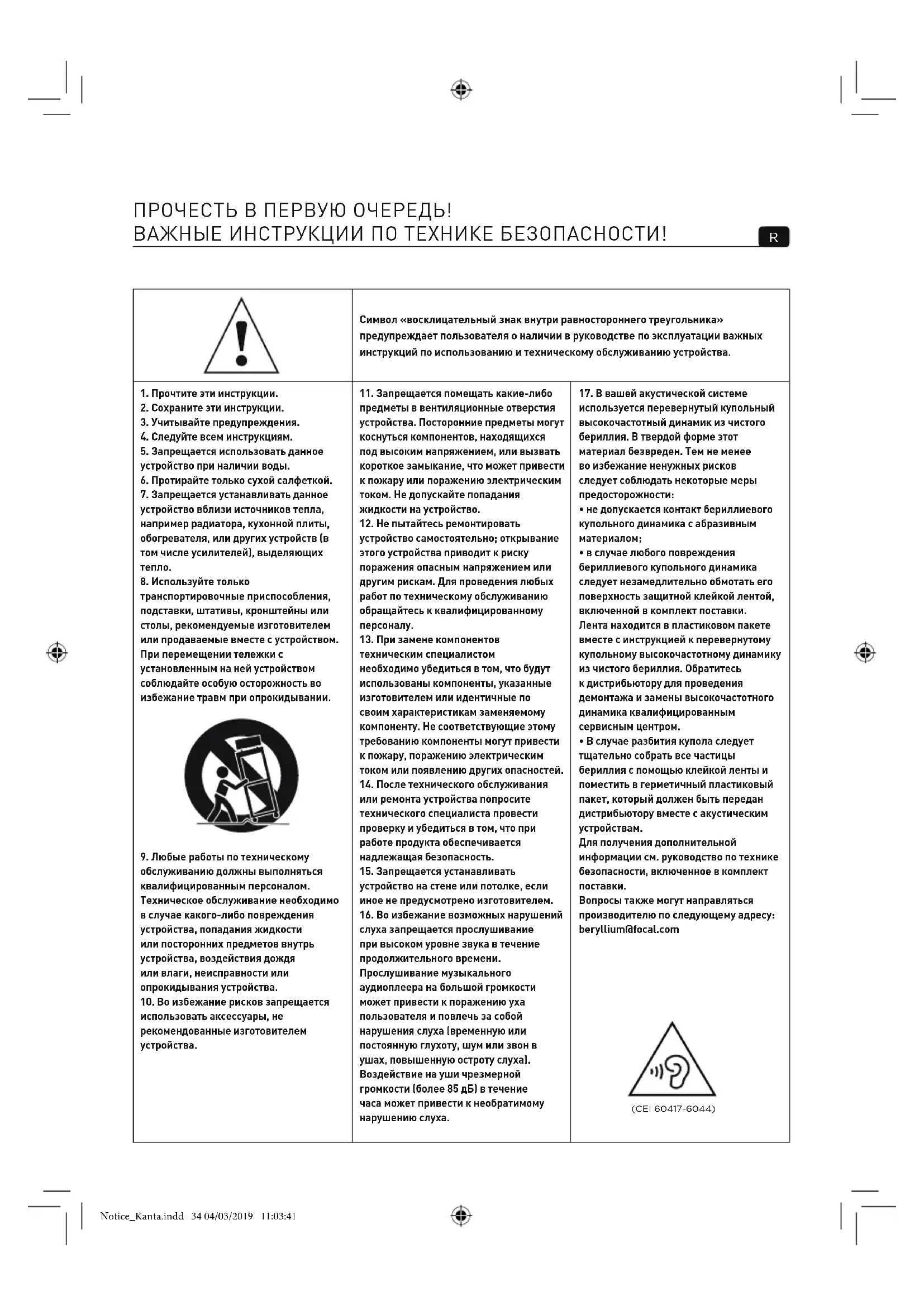 Вопросы также могут направляться производителю по следующему адресу: beryllium@focal.com (CEI 60417-6044) Notice_Kanta.indd 34 04/03/2019 11:03:4135 KANTA