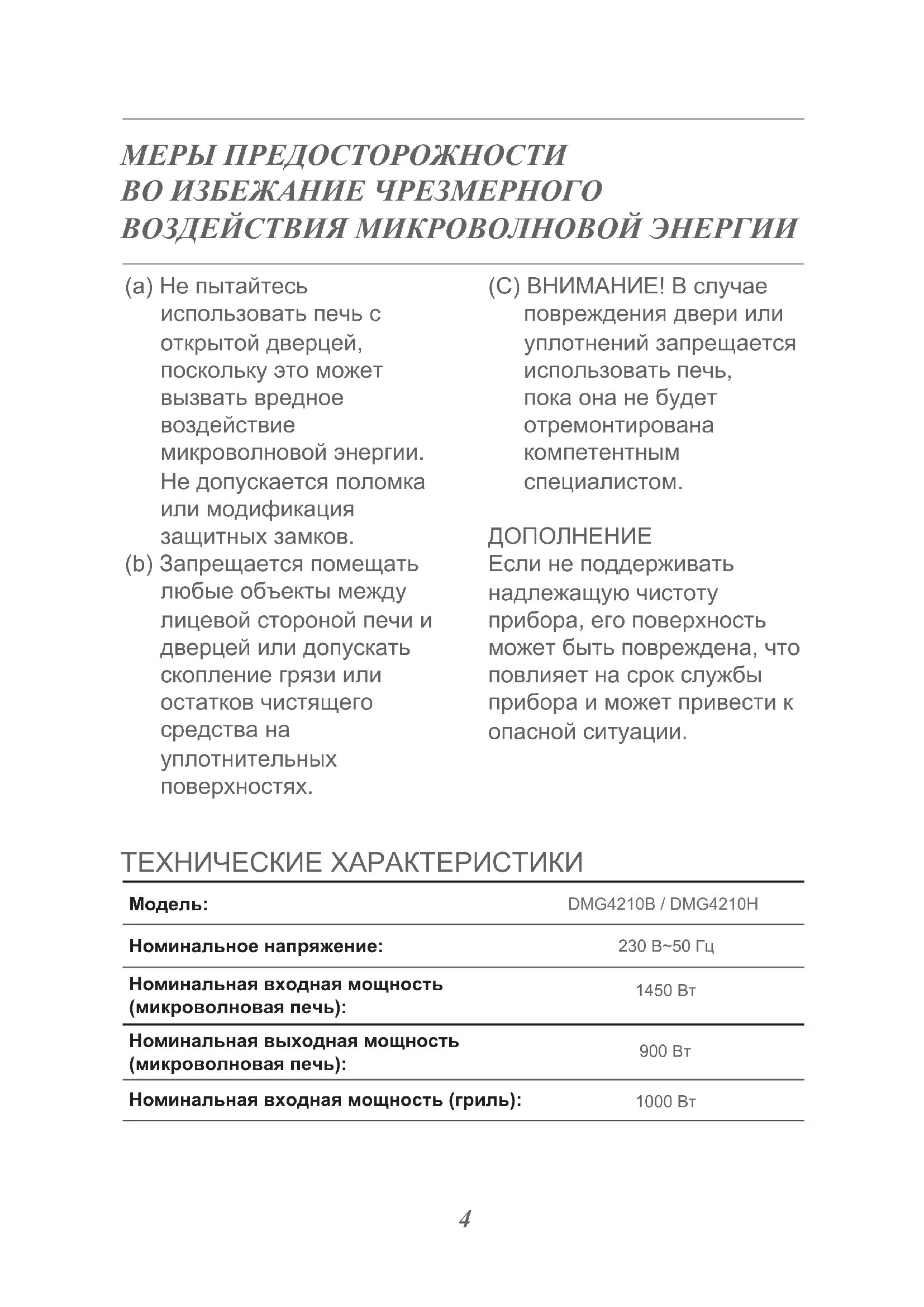 ВАЖНЫЕ УКАЗАНИЯ ПО БЕЗОПАСНОСТИ Чтобы снизить опасность пожара, поражения током, травм и чрезмерного воздействия энергии микроволновой печи при использовании прибора необходимо соблюдать базовые меры предосторожности, в том числе следующие: – Прочитайте и соблюдайте следующее: «МЕРЫ ПРЕДОСТОРОЖНОСТИ ВО ИЗБЕЖАНИЕ ЧРЕЗМЕРНОГО ВОЗДЕЙСТВИЯ МИКРОВОЛНОВОЙ