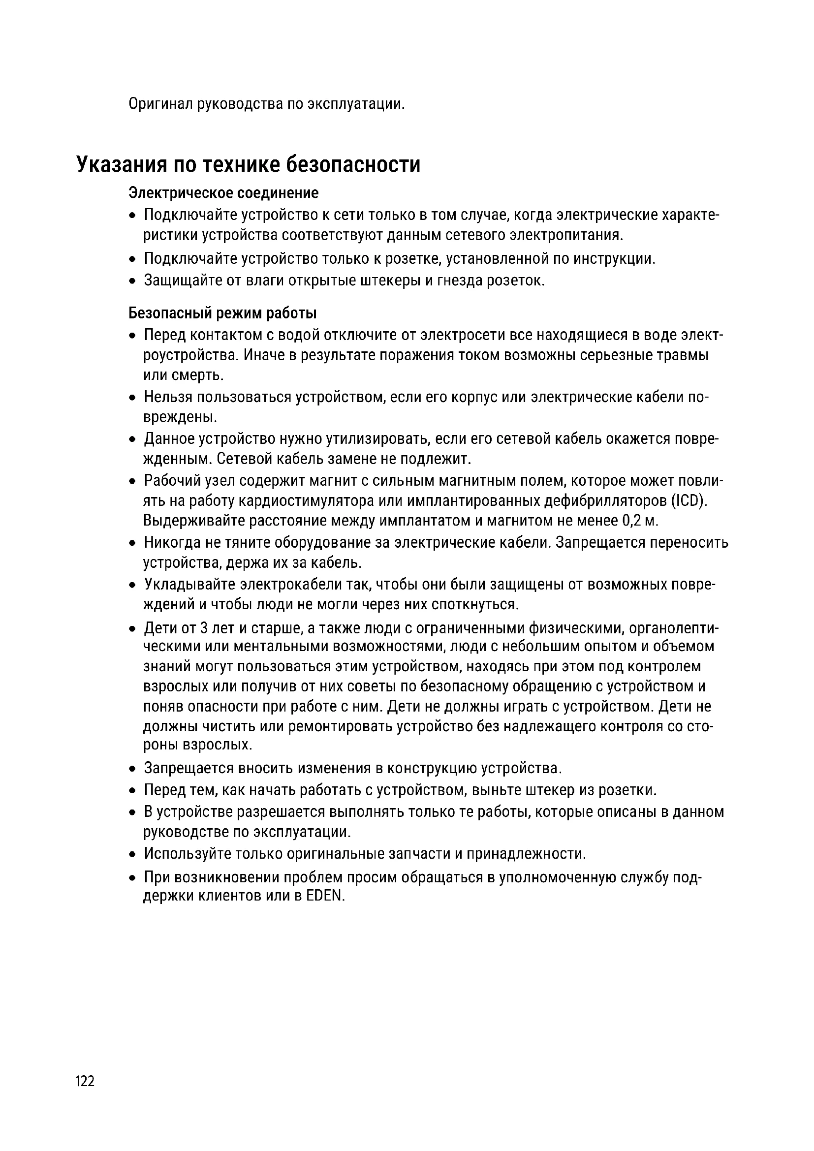 - При возникновении проблем просим обращаться в уполномоченную службу под- держки клиентов или в EDEN.DE