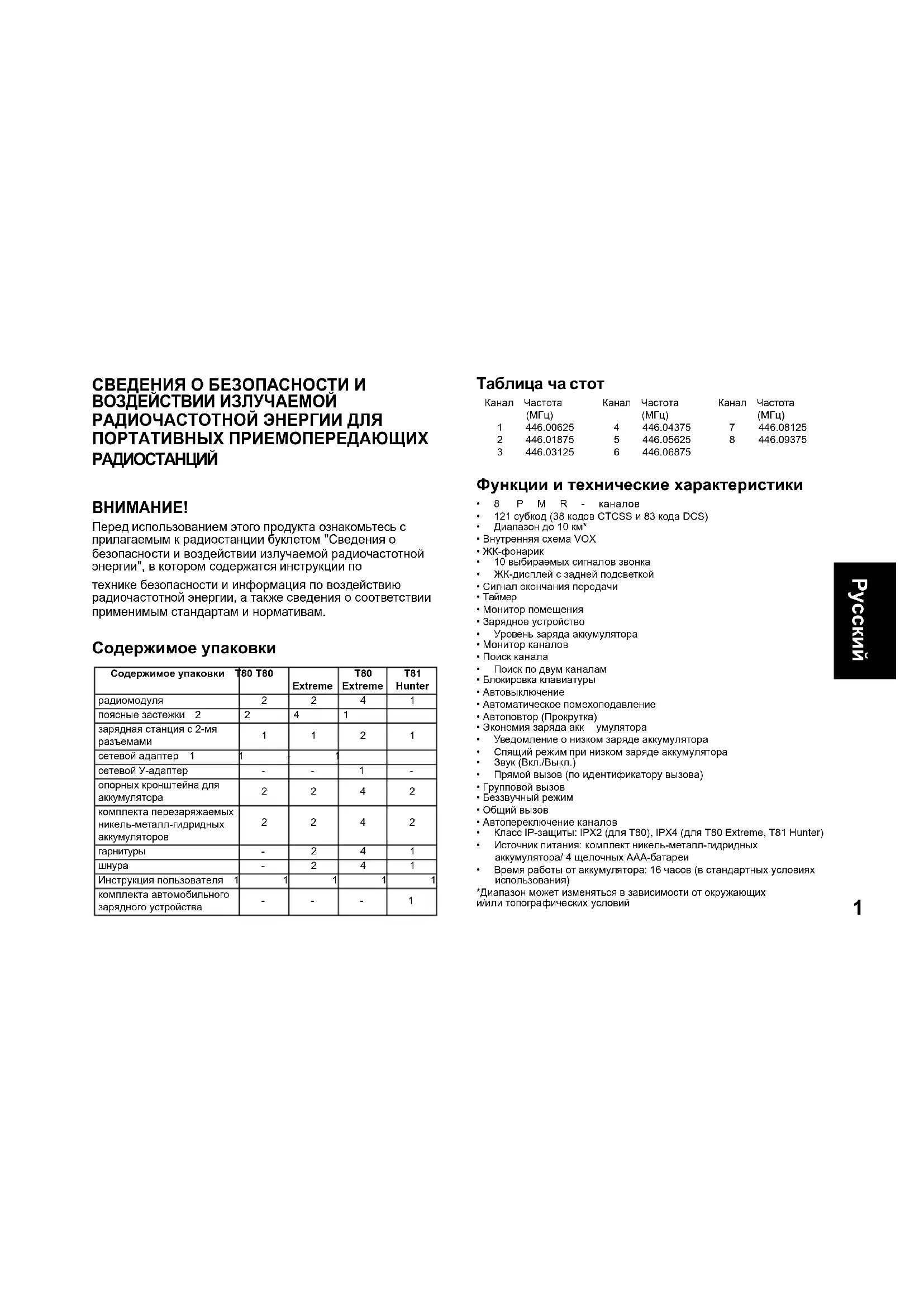 пользования) *Диапазон может изменяться в зависимости от окружающих и/или топографических условий Содержимое упаковки T80 T80 Extreme T80 Extreme T81 Hunterрадиомодуля