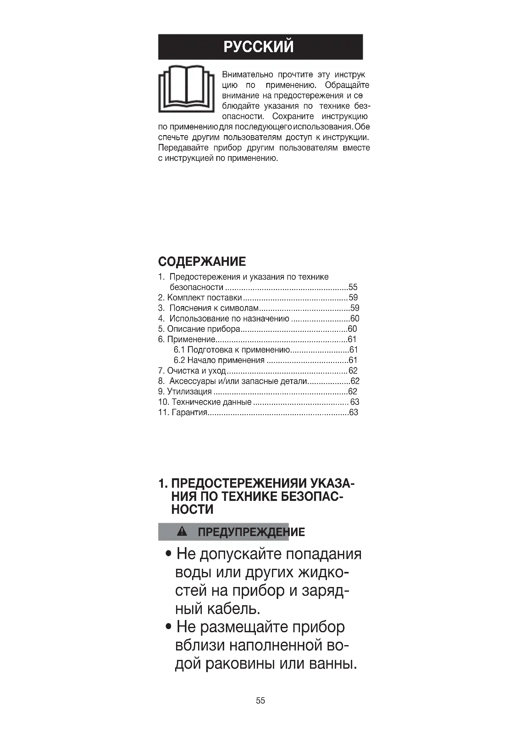 Проверьте комплект поставки иубедитесь втом, что на картонной упаковке нет внешних повреждений. Перед использованием убедитесь втом, что прибор и его принадлежности неимеют видимых повреж