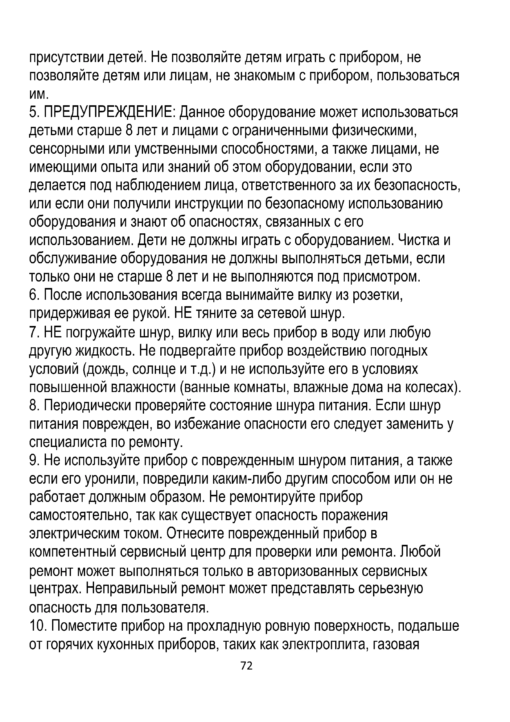 9. Не используйте прибор с поврежденным шнуром питания, а также