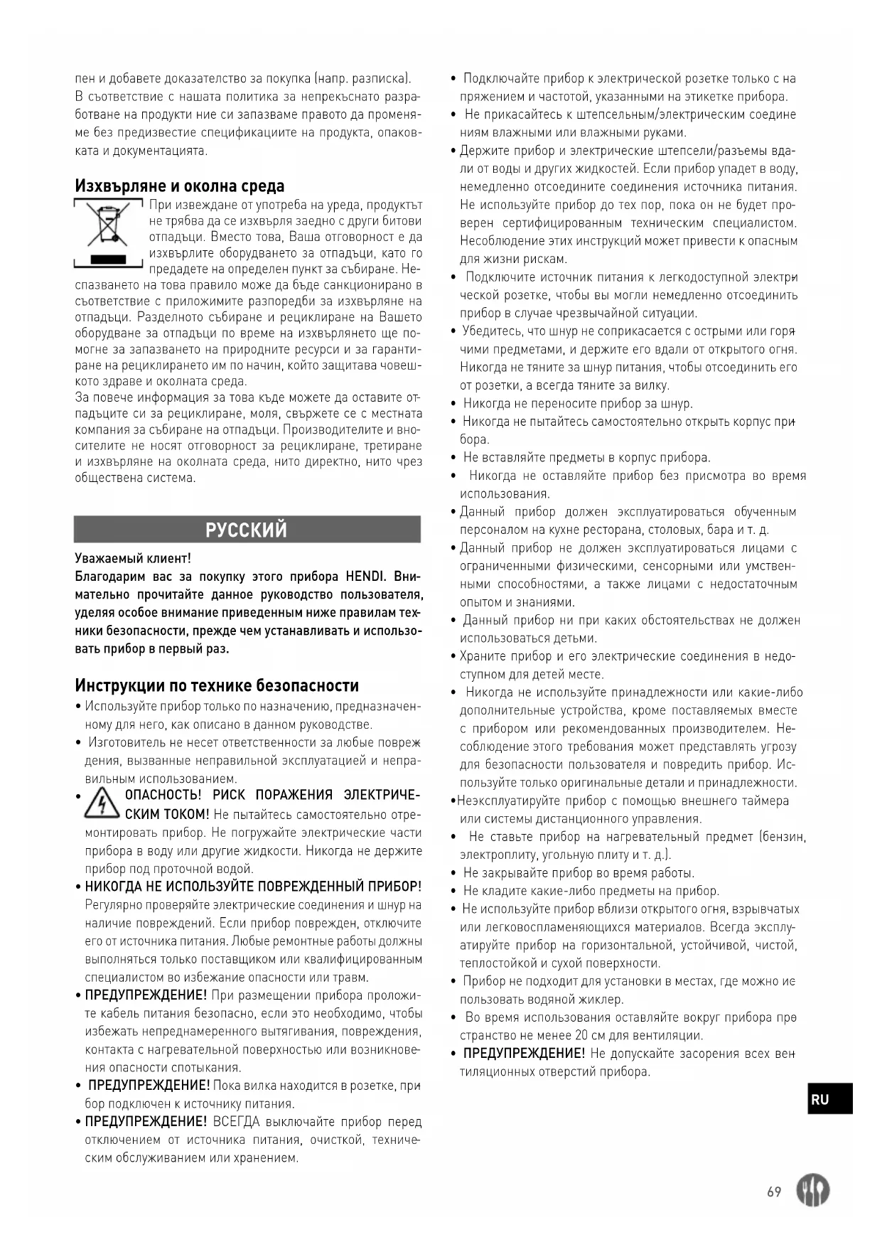 Уважаемый клиент! Благодарим вас за покупку этого прибора HENDI. Вни