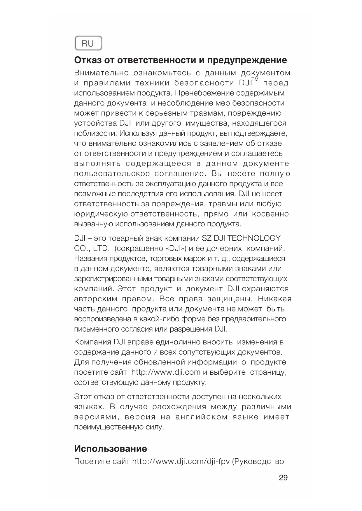 Отказ от ответственности и предупреждение Внимательно ознакомьтесь с данным документом и правилами техники безопасности DJI
