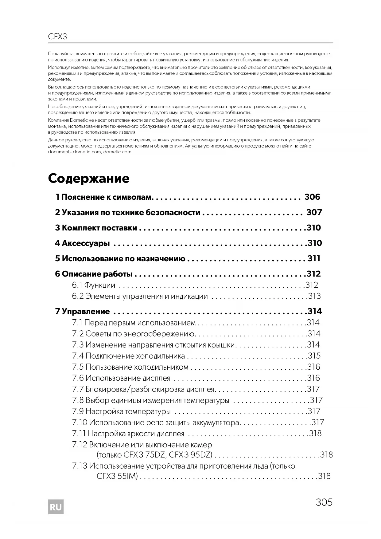 Дополнительная информация по управлению продуктом. DometicCFX3_OPM_4445103157_EMEA16_202x-xx-xx.book Seite 307 Dienstag, 27. Oktober 2020 5:42 17RU Указания по технике безопасности CFX3