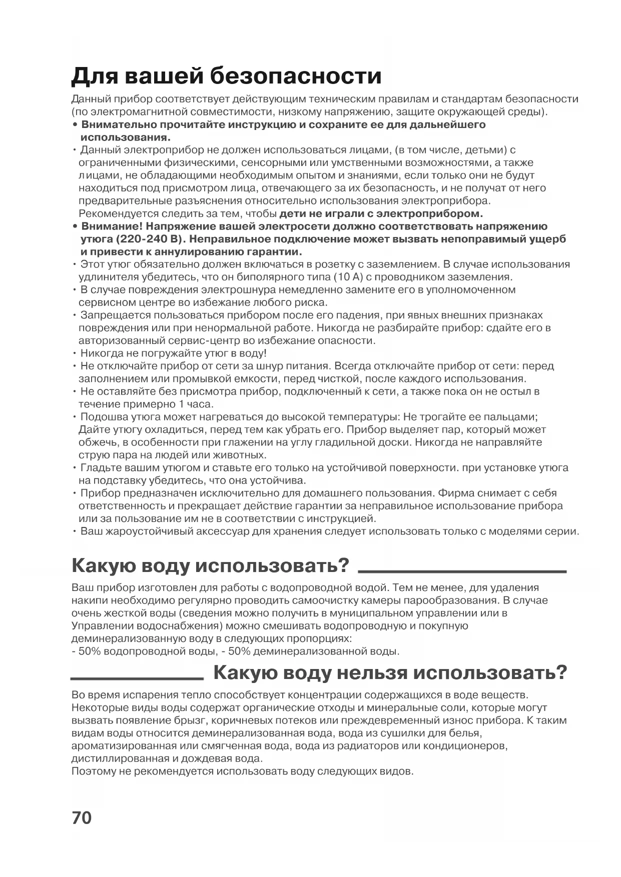 - Этот утюг обязательно должен включаться в розетку с заземлением. В случае использования удлинителя убедитесь, что он биполярного типа (10 А) с проводником заземления.