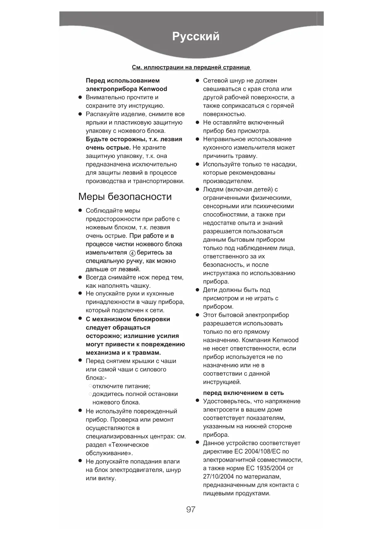 Этот бытовой электроприбор разрешается использовать только по его прямому назначению. Компания Kenwood не несет ответственности, если прибор используется не по назначению или не в соответствии с данной инструкцией. перед включением в сеть