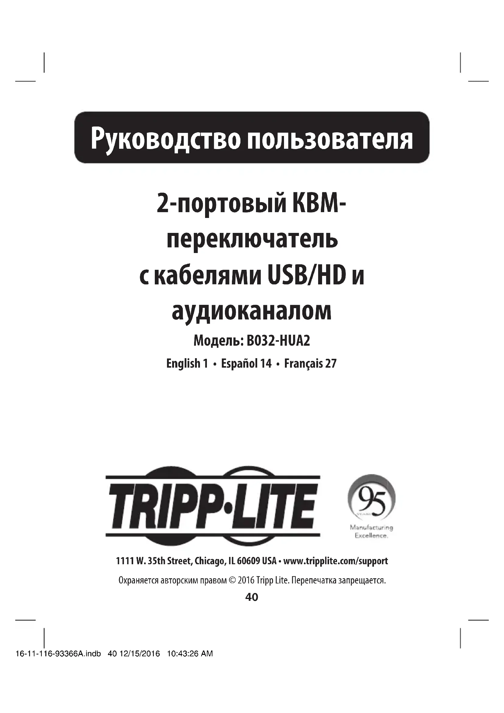 РУКОВОДСТВО ПОЛЬЗОВАТЕЛЯ B032HUA2 Tripp Lite