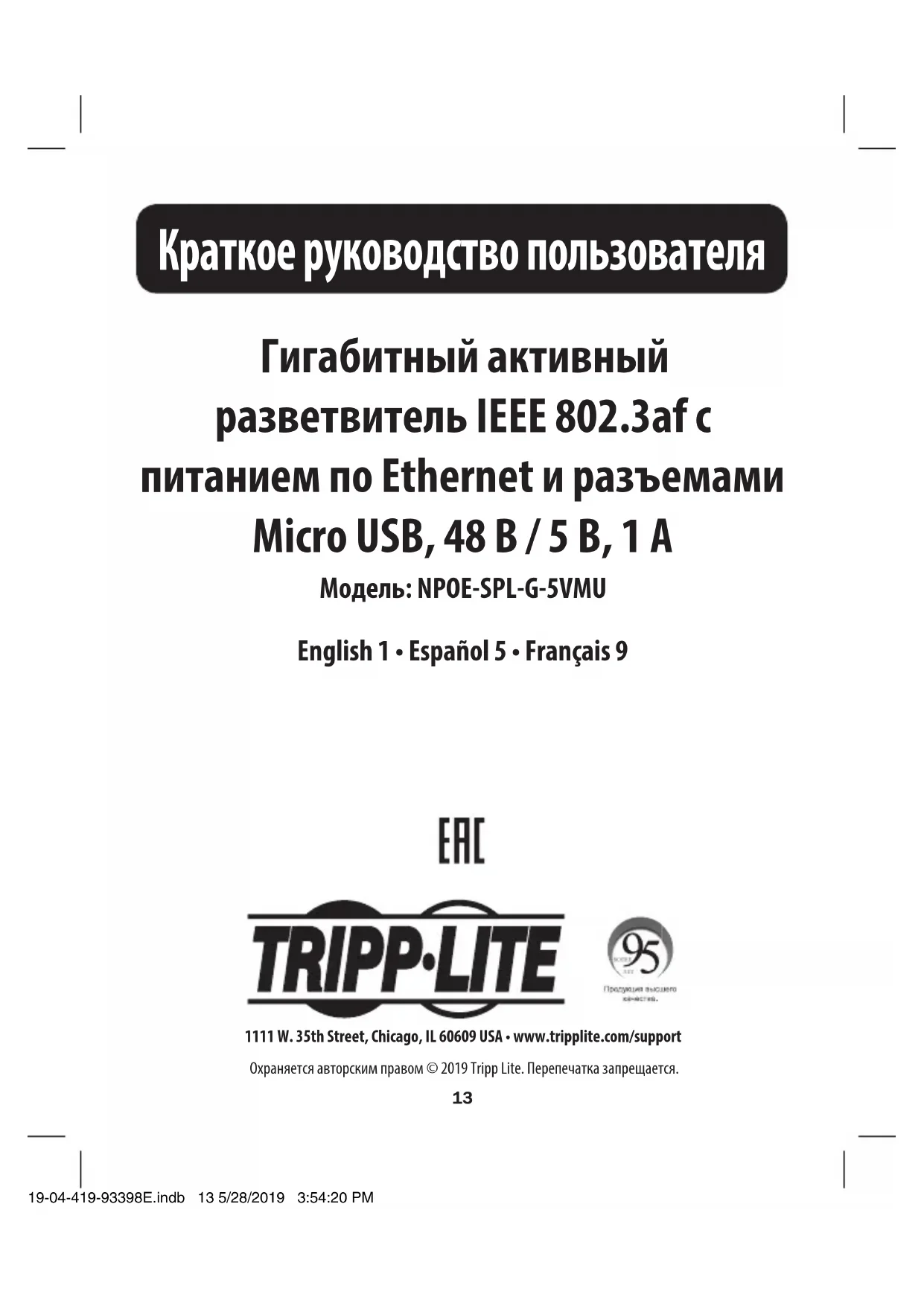 РУКОВОДСТВО ПОЛЬЗОВАТЕЛЯ NPOESPLG5VMU Tripp Lite