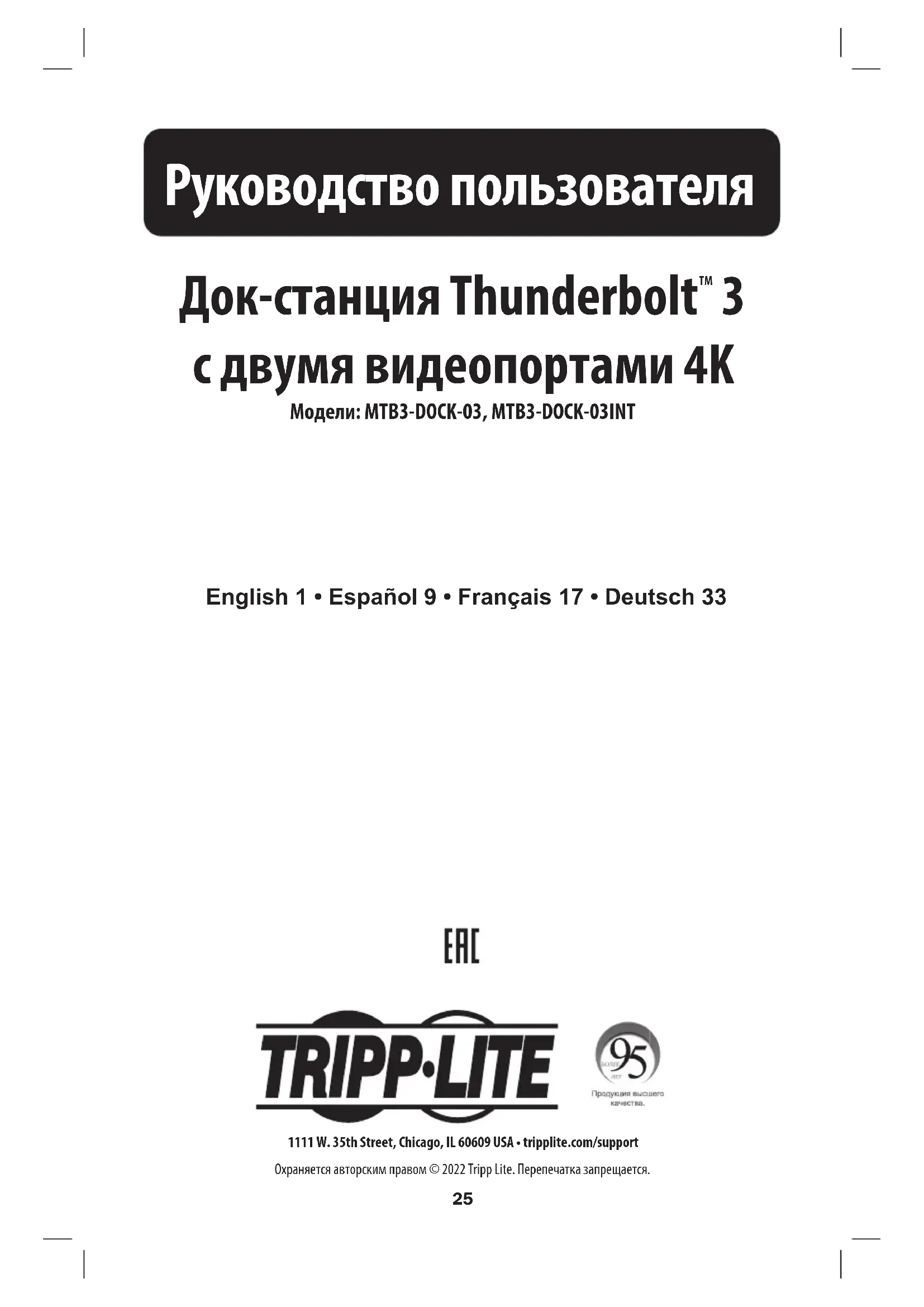 РУКОВОДСТВО ПОЛЬЗОВАТЕЛЯ Thunderbolt MTB3DOCK03 Tripp Lite