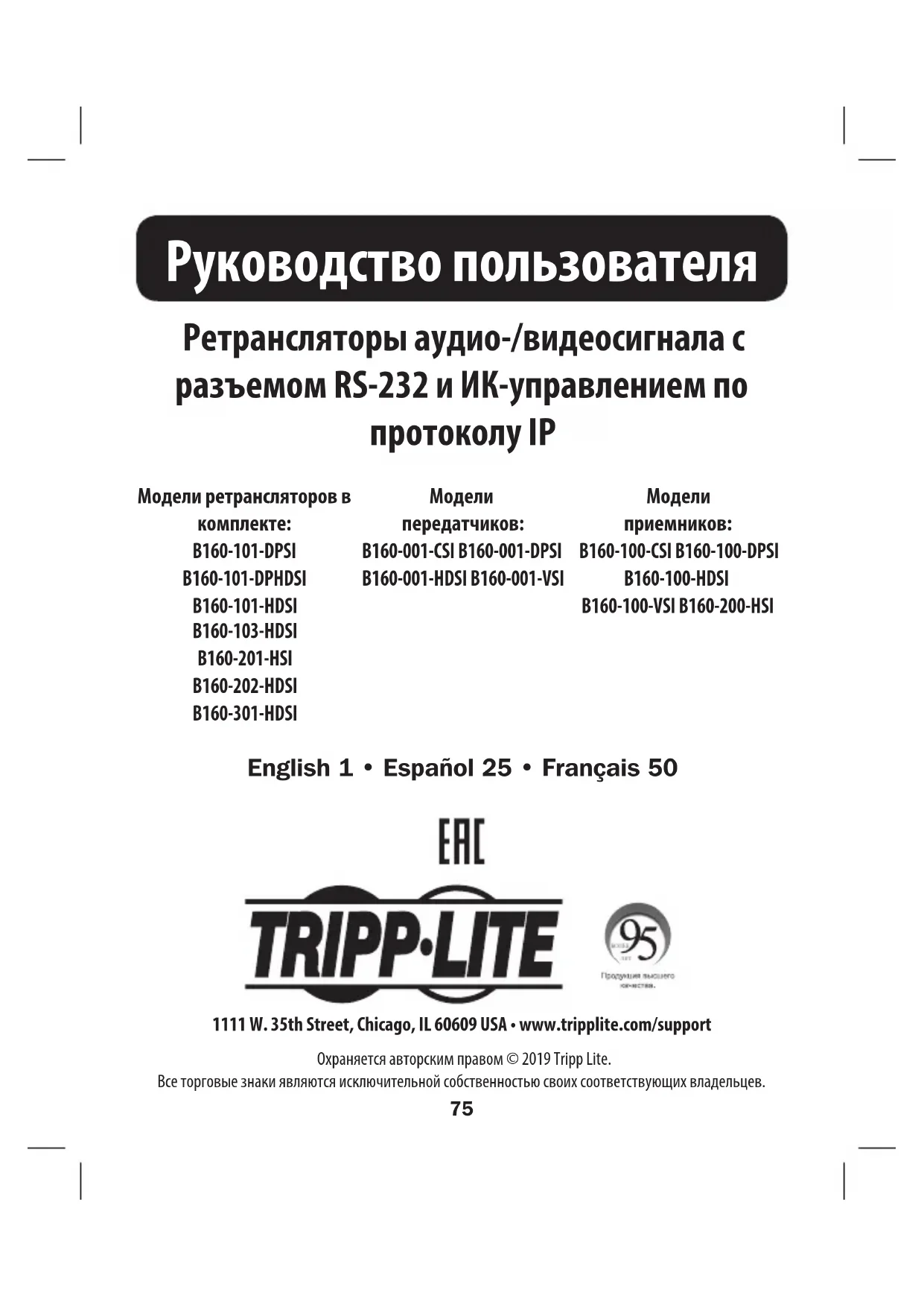 B160101HDSI - приёмник Tripp Lite - Бесплатное руководство пользователя