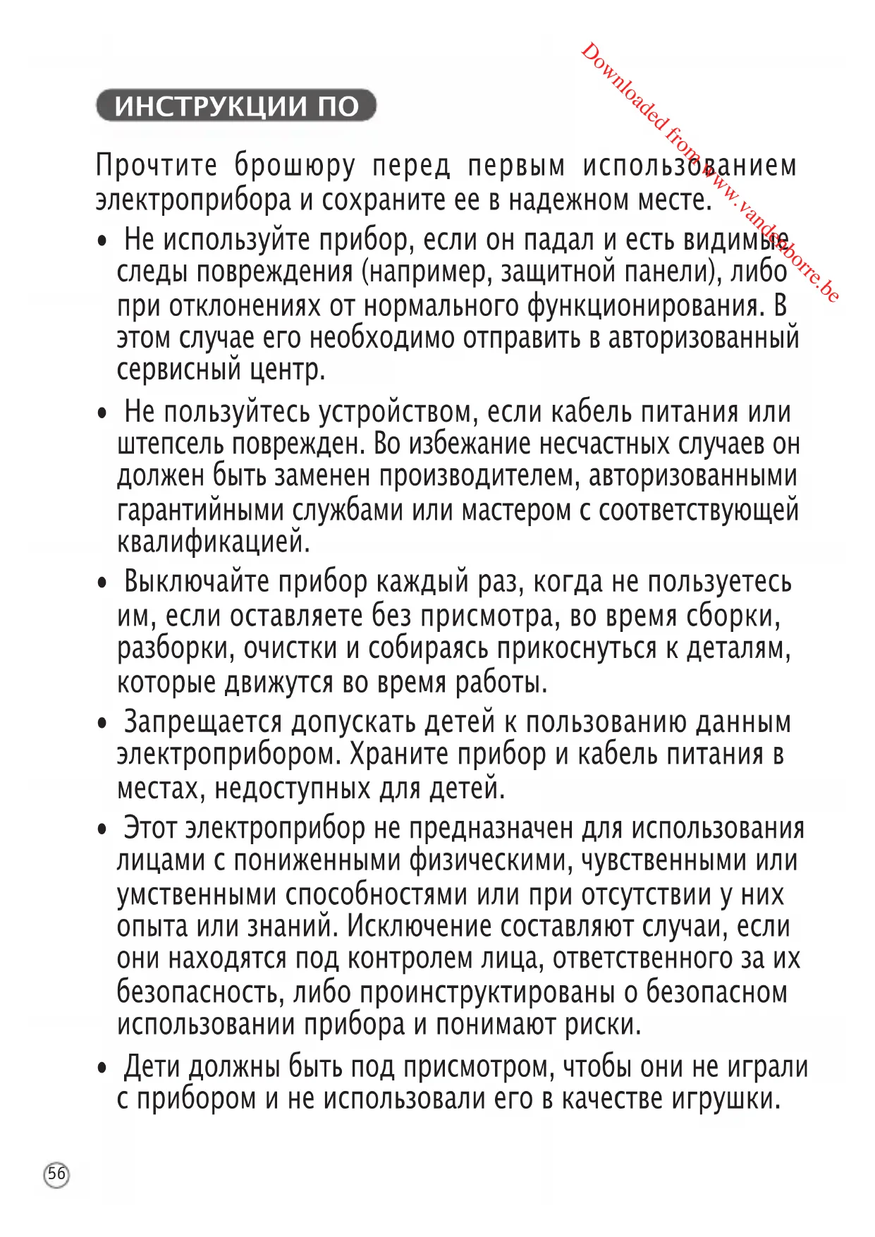 Downloaded from www.vandenborre.beПрочтите брошюру перед первым использованием электроприбора и сохраните ее в надежном месте.