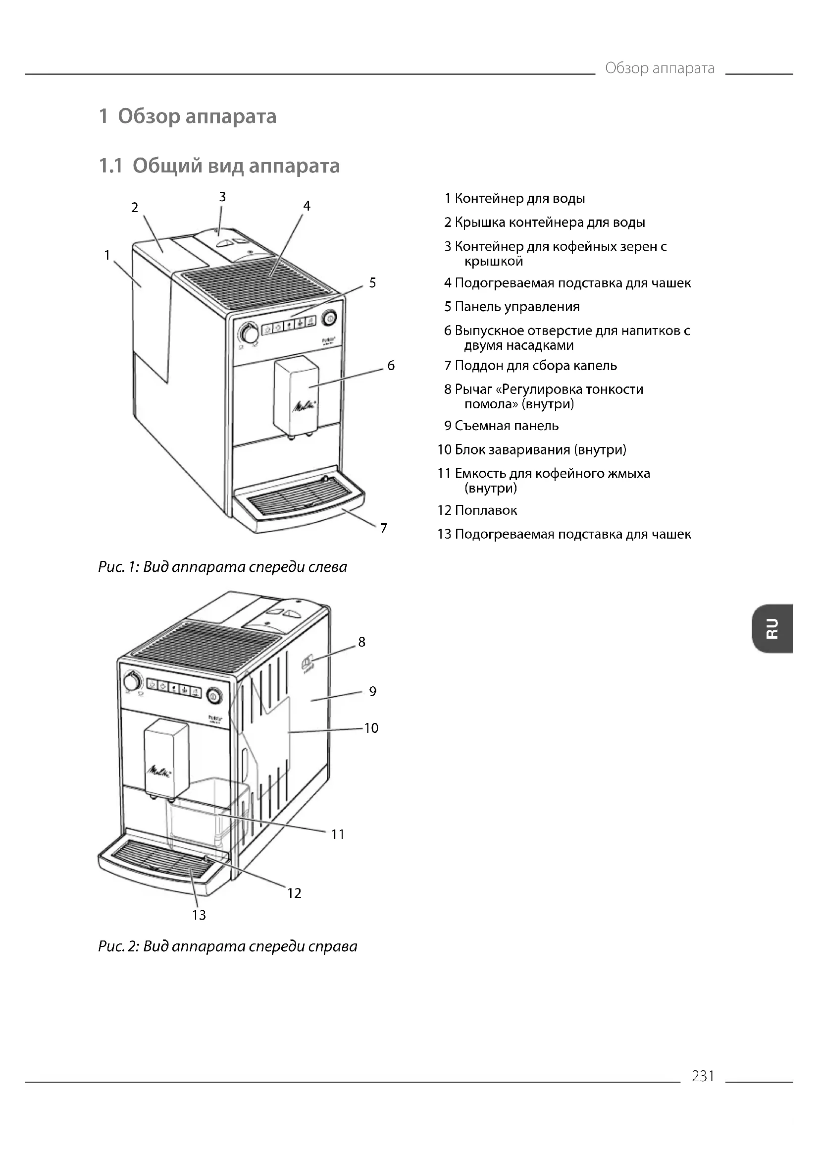 Найдите руководство к устройству бесплатно Purista F230101 MELITTA в формате PDF.